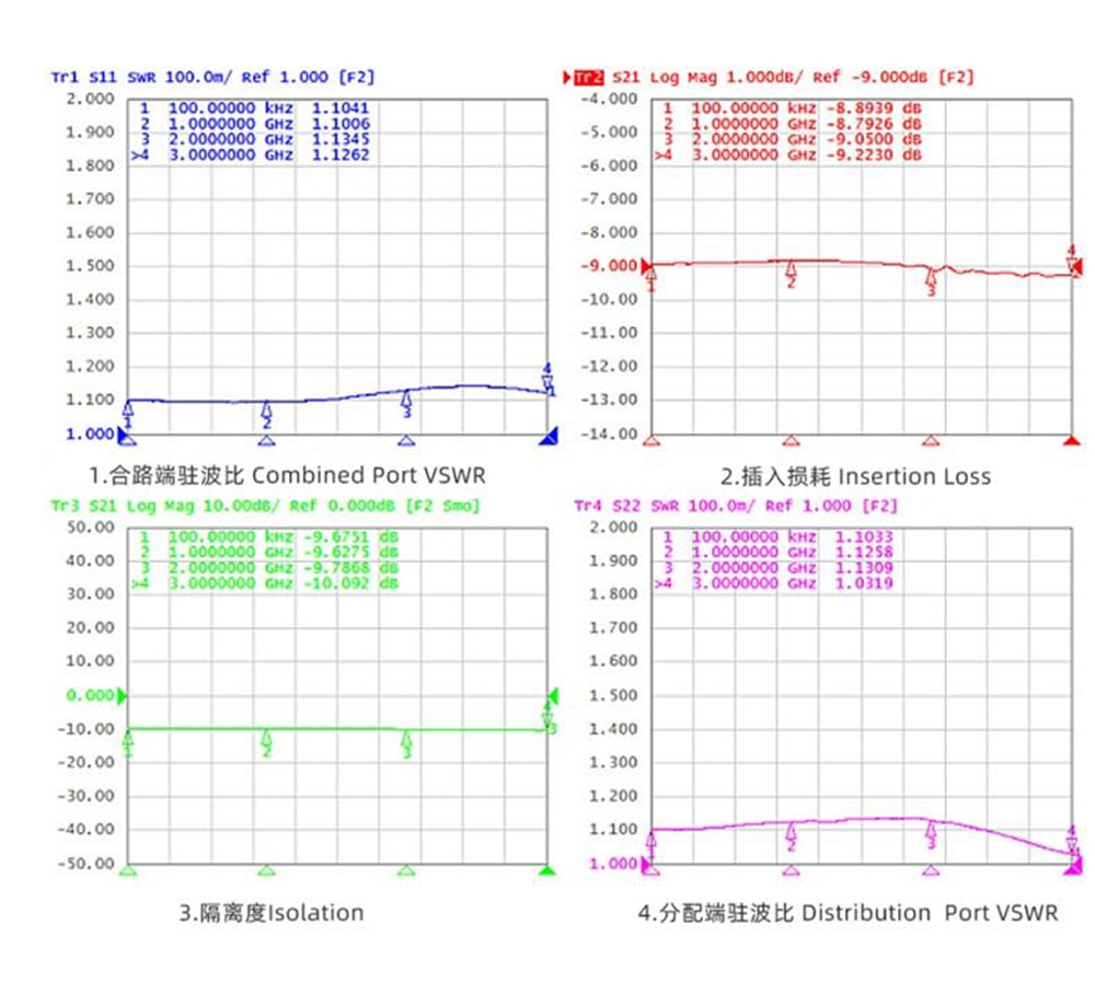 - Combined port VSWR: (Typ.) 1.14 / (Max.) 1.25