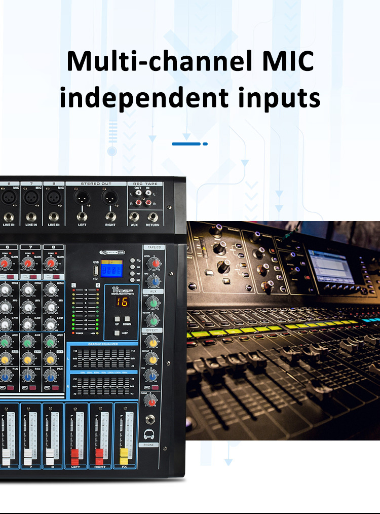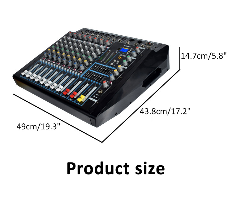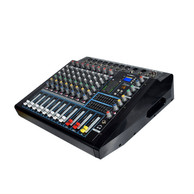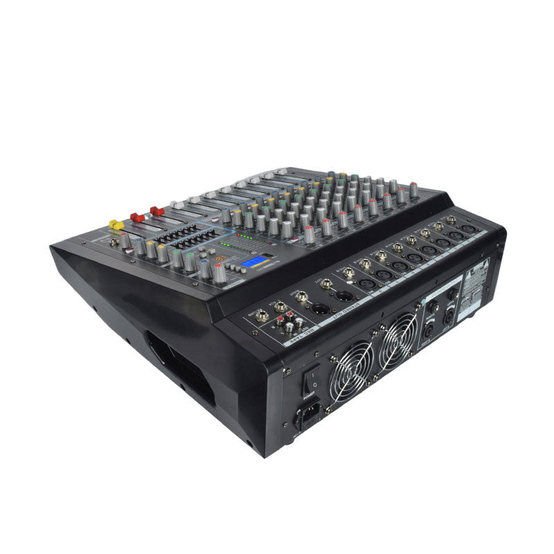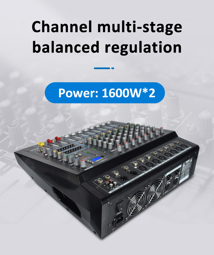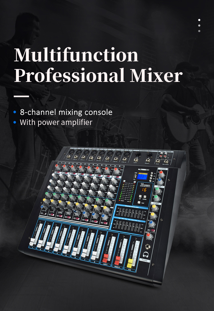R-1600 1600W*2 Professional 8-Channel Power Mixer KTV Mixing Console with Bluetooth Reverb Equalizer