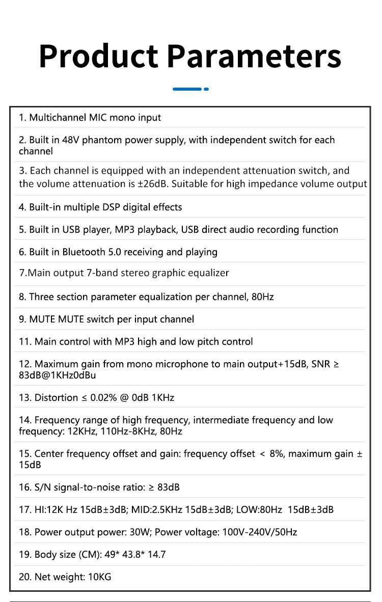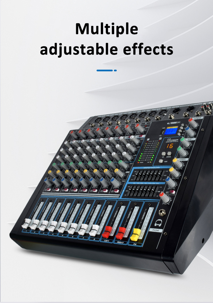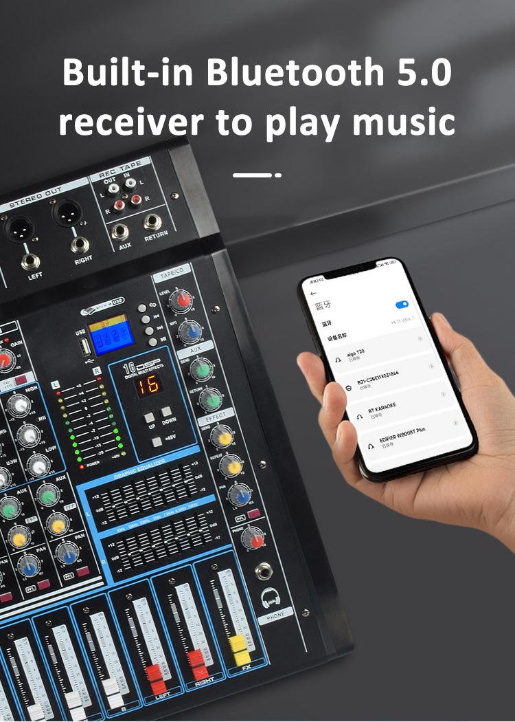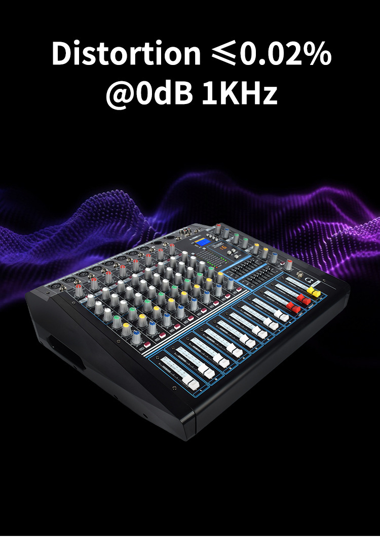 R-1600 1600W*2 Professional 8-Channel Power Mixer KTV Mixing Console with Bluetooth Reverb Equalizer
