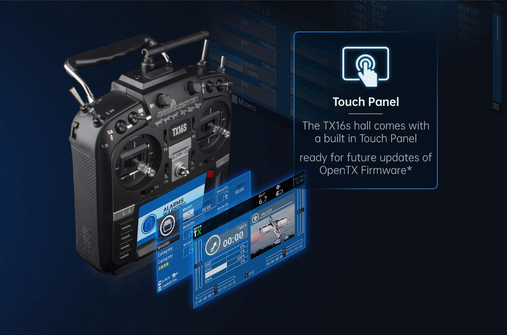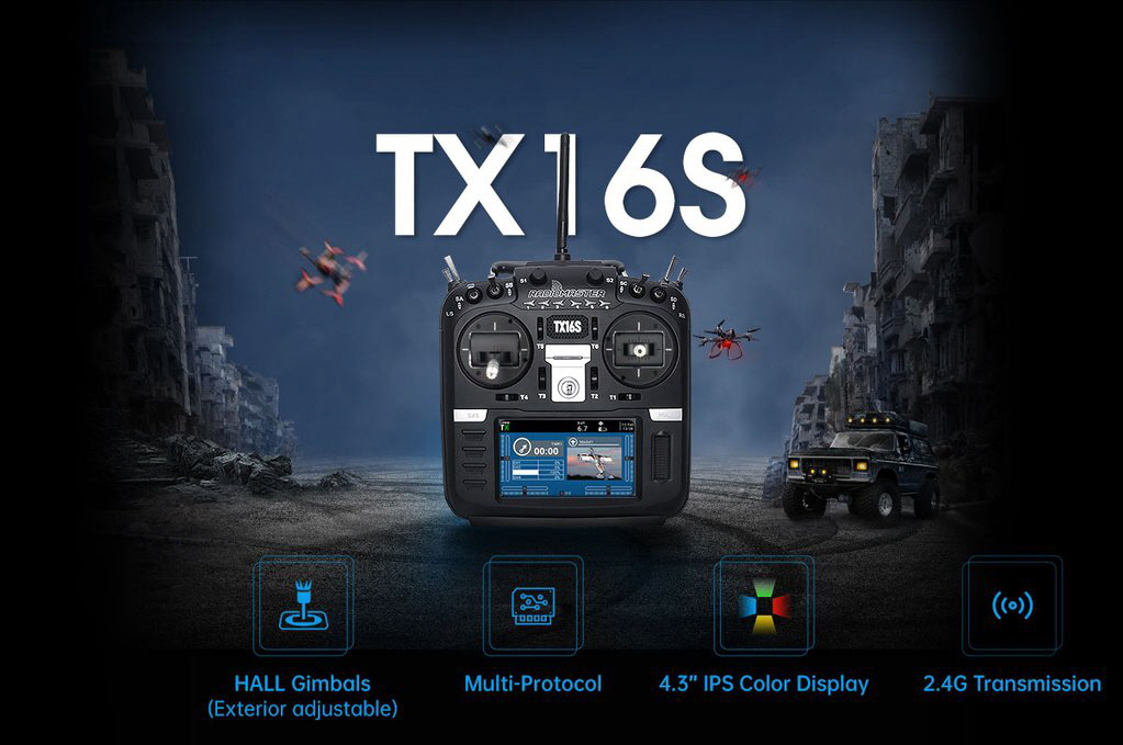 - TX16S is a 16ch transmitter with 2.4G remote control system. It is suitable for all types of fixed-wing aeroplanes, gliders, helicopters and multi-rotor RC boat plane and car in one. Models and types can be selected according to the aircraft used, and various hybrid functions can be used.