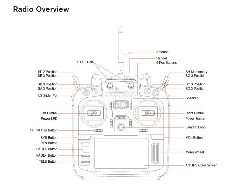 - 1 x TX16S Transmitter