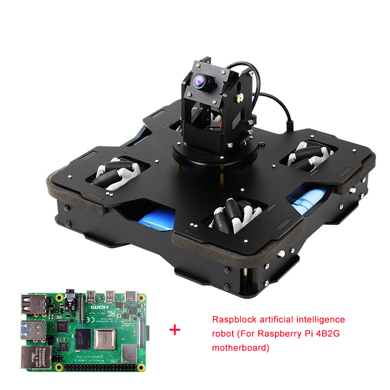 Raspblock omnidirectional intelligent robot is designed for Raspberry Pi. Open Source CV is the image processing library, mainstream development tool for Jupyter Lab is used, and programming language for Python3 is used. It combines omnidirectional Mecanum wheels and 2DOF camera, 1DOF manual lifting gimbal, can realize color recognition and tracking, face recognition and tracking, object recognition and tracking, gesture recognition, QR code recognition, machine learning (For KNN, CNN, Smart gameplay such as SVM, TensorFlow), handwritten digit recognition, voice broadcast and multiple control methods of omnidirectional Mecanum wheels.