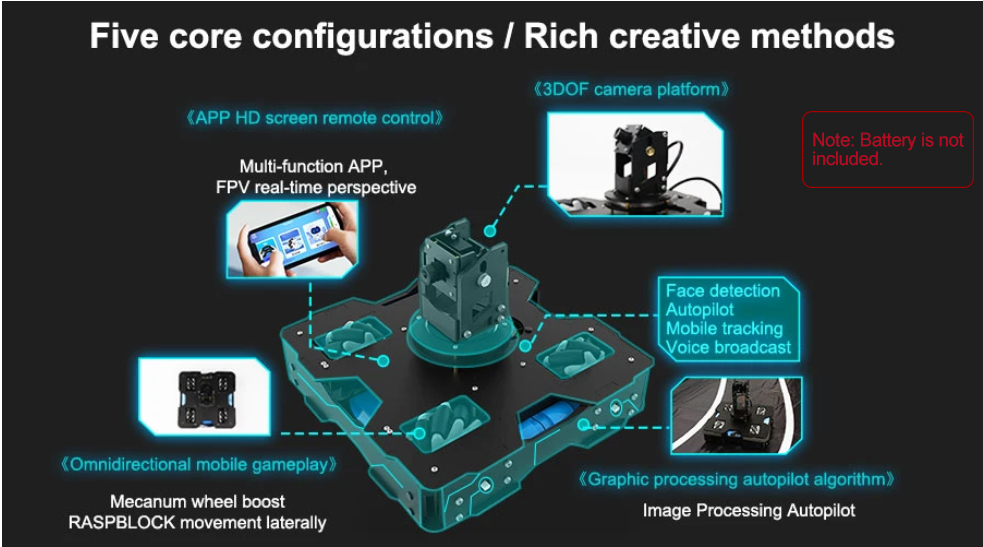 Raspblock AI Smart Robot Car Unassembled Autonomous Driving With Main Board For Raspberry Pi 4B/4G