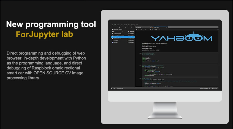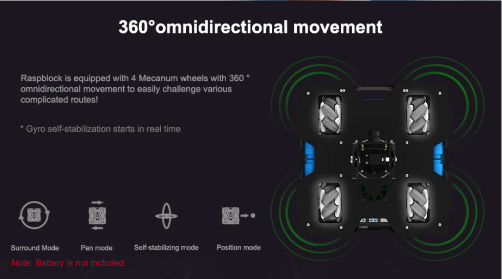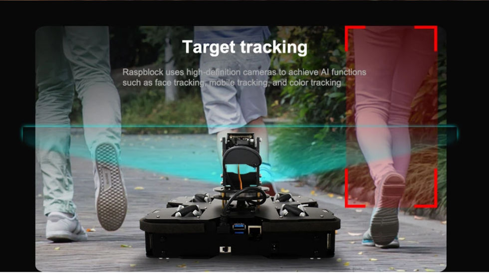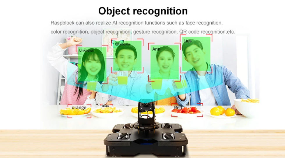 Raspblock omnidirectional intelligent robot is designed for Raspberry Pi. Open Source CV is the image processing library, mainstream development tool for Jupyter Lab is used, and programming language for Python3 is used. It combines omnidirectional Mecanum wheels and 2DOF camera, 1DOF manual lifting gimbal, can realize color recognition and tracking, face recognition and tracking, object recognition and tracking, gesture recognition, QR code recognition, machine learning (For KNN, CNN, Smart gameplay such as SVM, TensorFlow), handwritten digit recognition, voice broadcast and multiple control methods of omnidirectional Mecanum wheels.