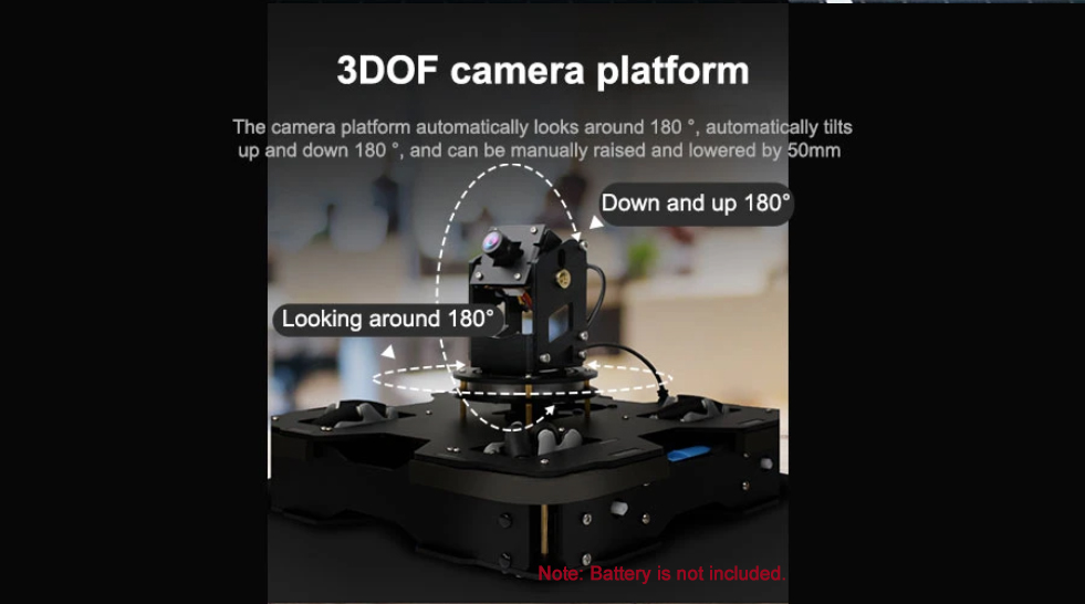 - PTZ rotation: 180 degree PWM servos, manual lifting