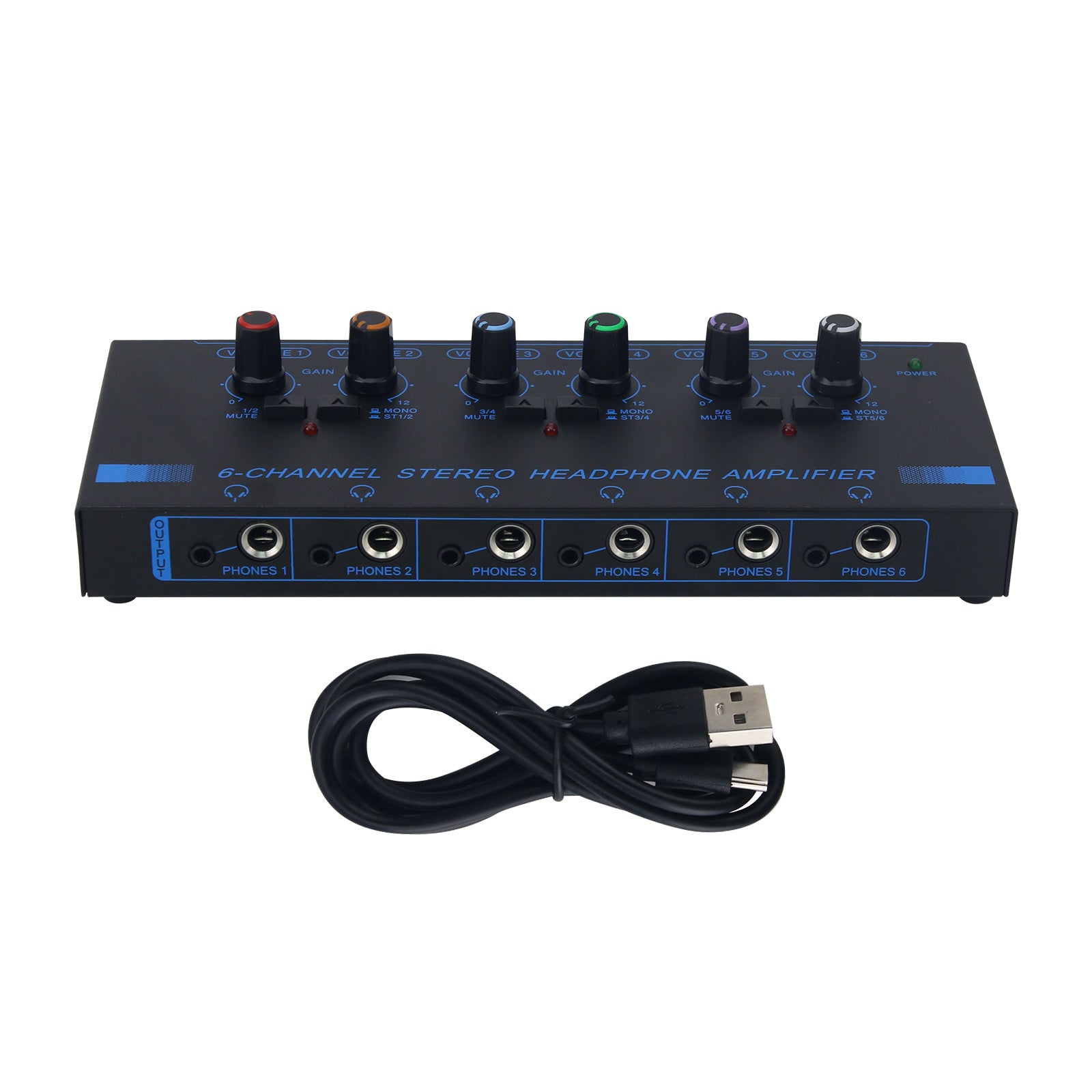 Recordio Blue GAX-PX600 Ultra-low Noise 6-Channel Stereo Headphone Amplifier with Mutual Non-interference Headphone Jack