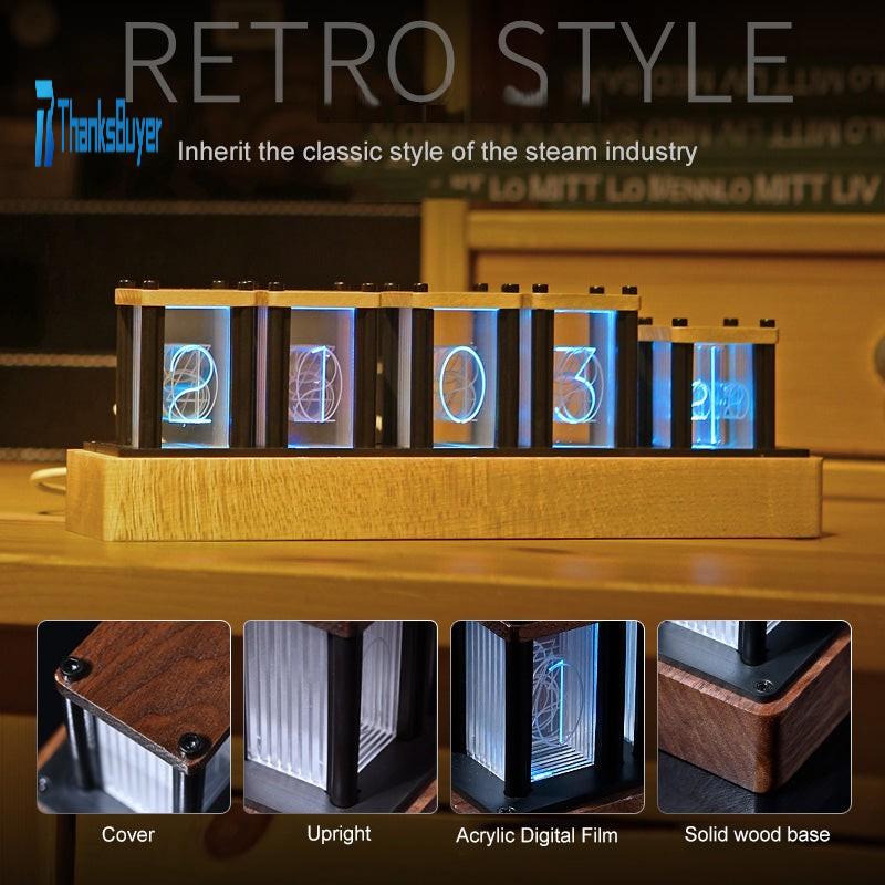 RGB Clock LED Pseudo Glow Tube Clock Hard Maple Wood DIY Kit Wonderful Birthday Present For Friends