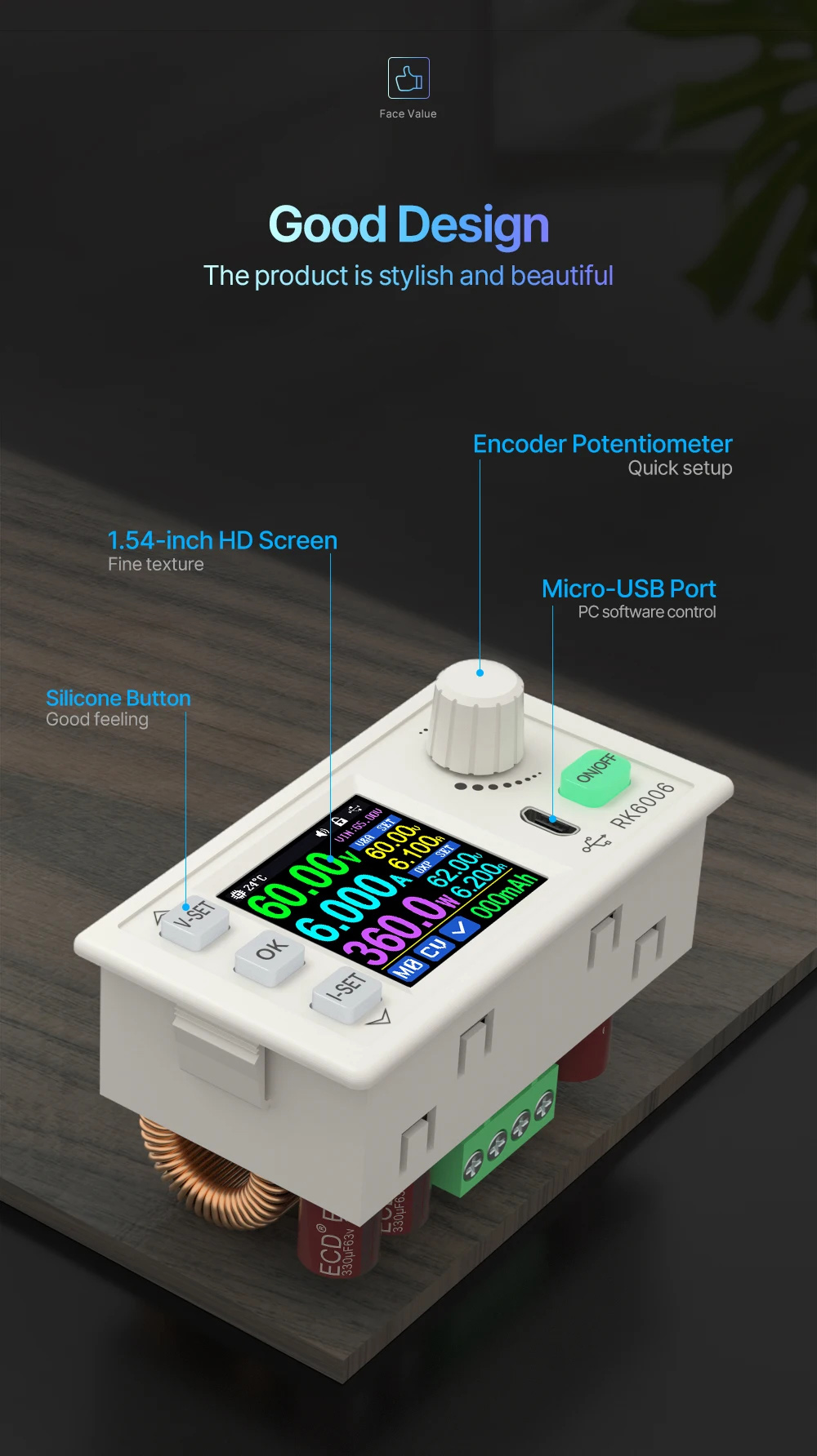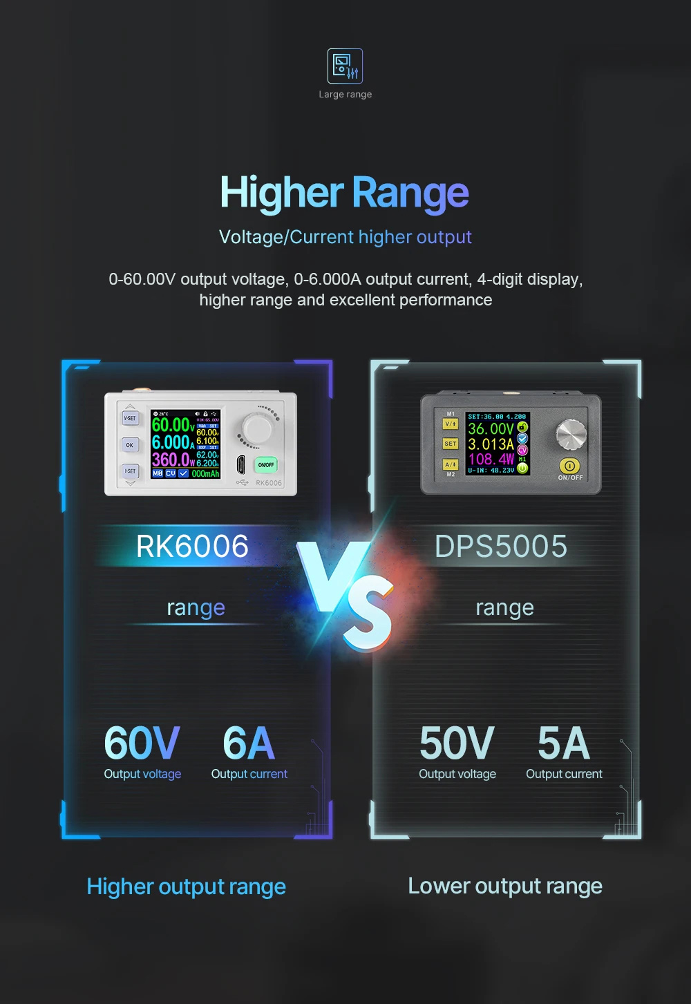 - Output voltage range: 0-60.00V