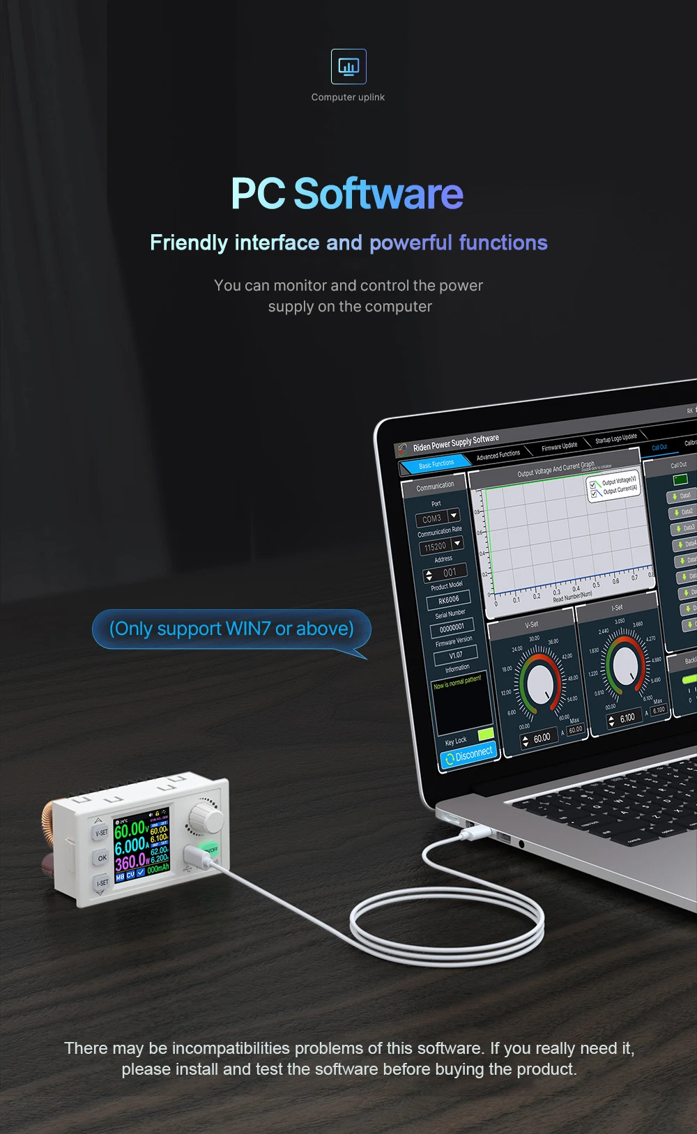 RK6006 60V 6A DC Power Supply Mini Programmable Power Supply Standard Version with USB Communication