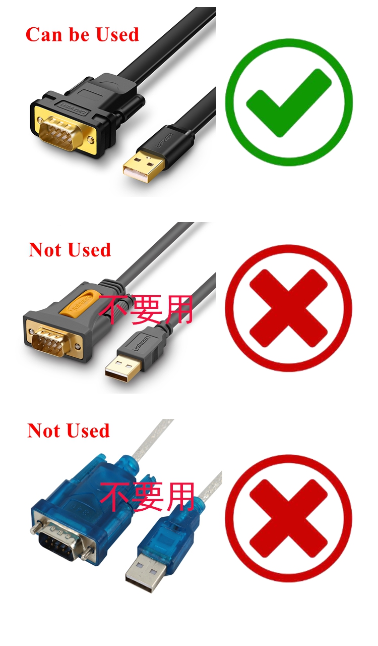 · It is recommended to use a USB to RS232 serial cable, and the FT232 chip version is recommended.