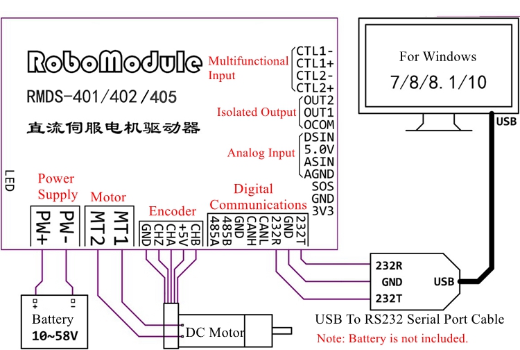 - The drive is connected to the computer for debugging and setting, only the RS232 port can be used