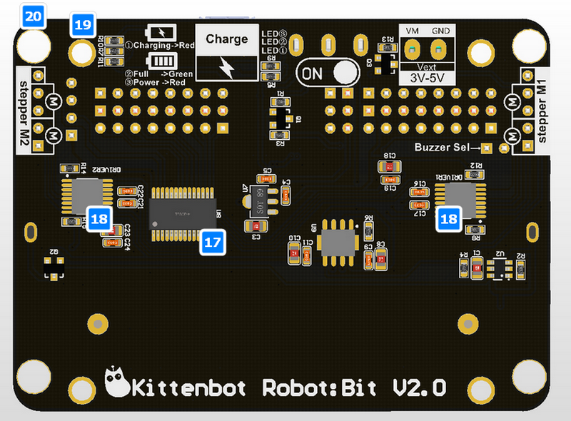 - It has a powerful ability to drive DC motors, stepper motors, servos, and onboard buzzer and RGB pixels and release all valid IO for microbit, with support the most common electronics module in the market.