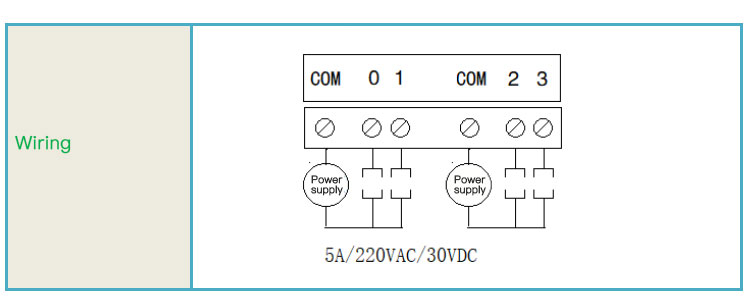 - Contact capacity: normally open relay: 5A/250VAC, 5A/30VDC