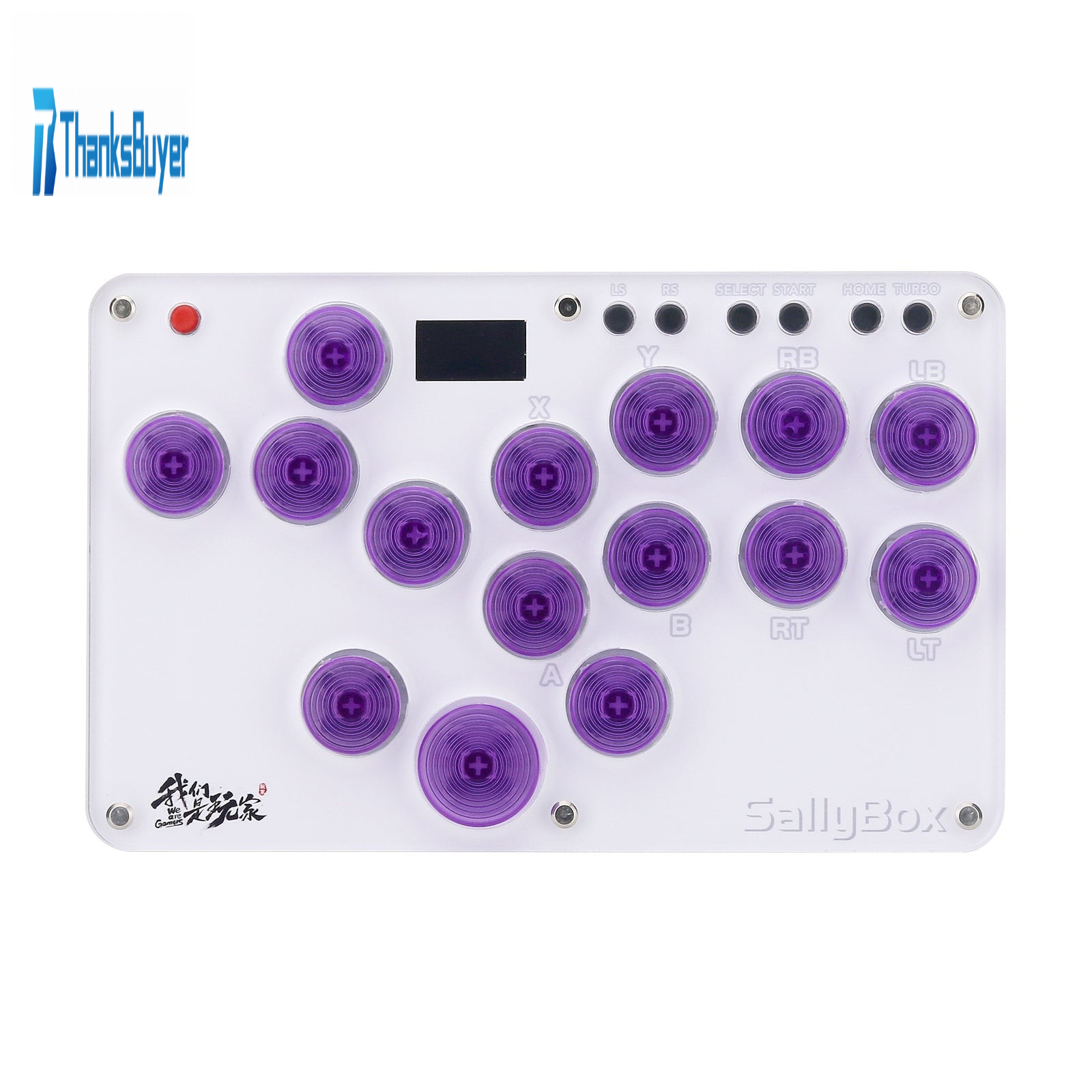 Sallybox Plus 15-Button Arcade Controller Mini Fight Stick with Purple Keycaps and Layout for Hitbox