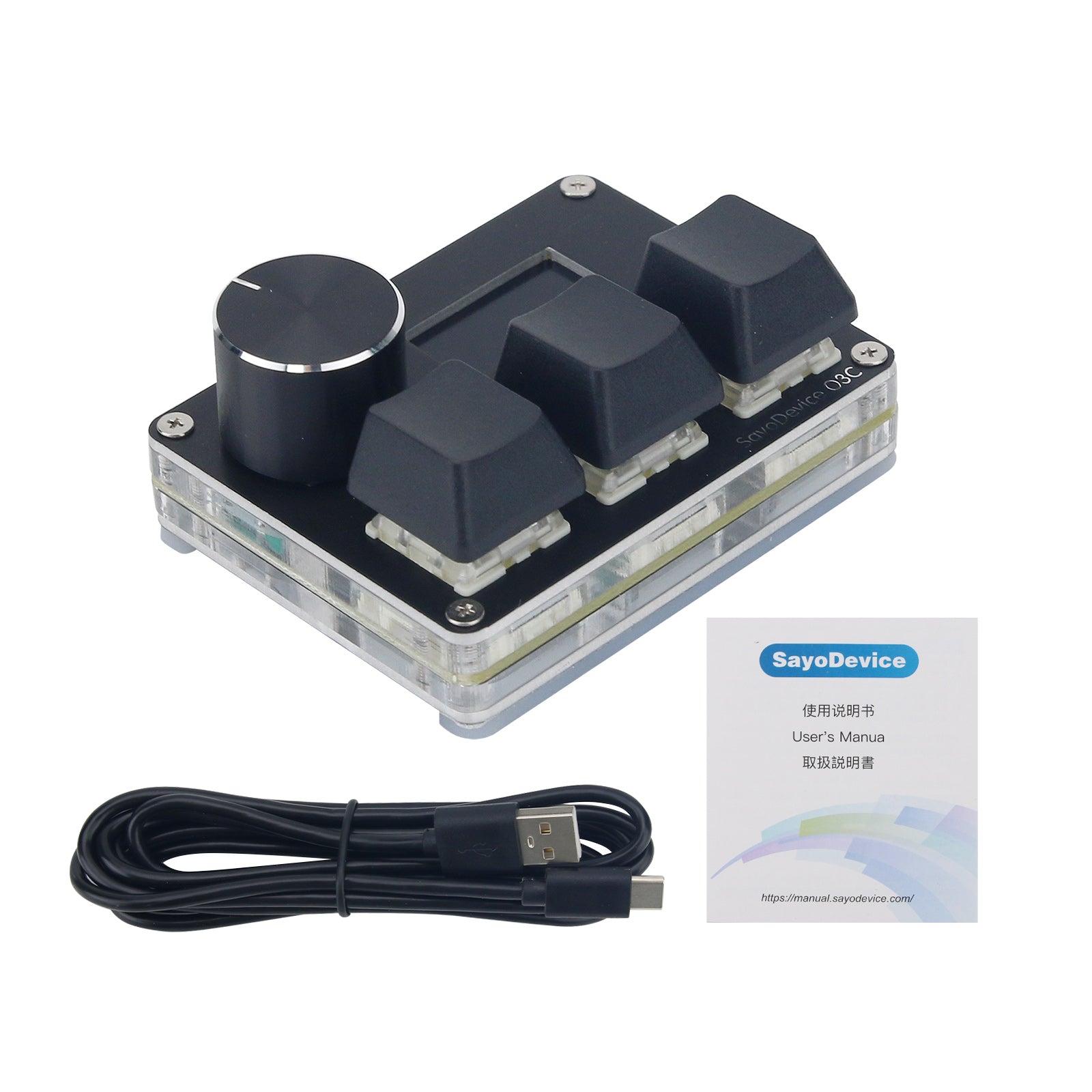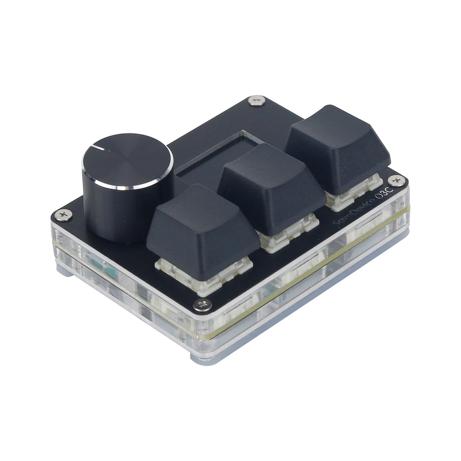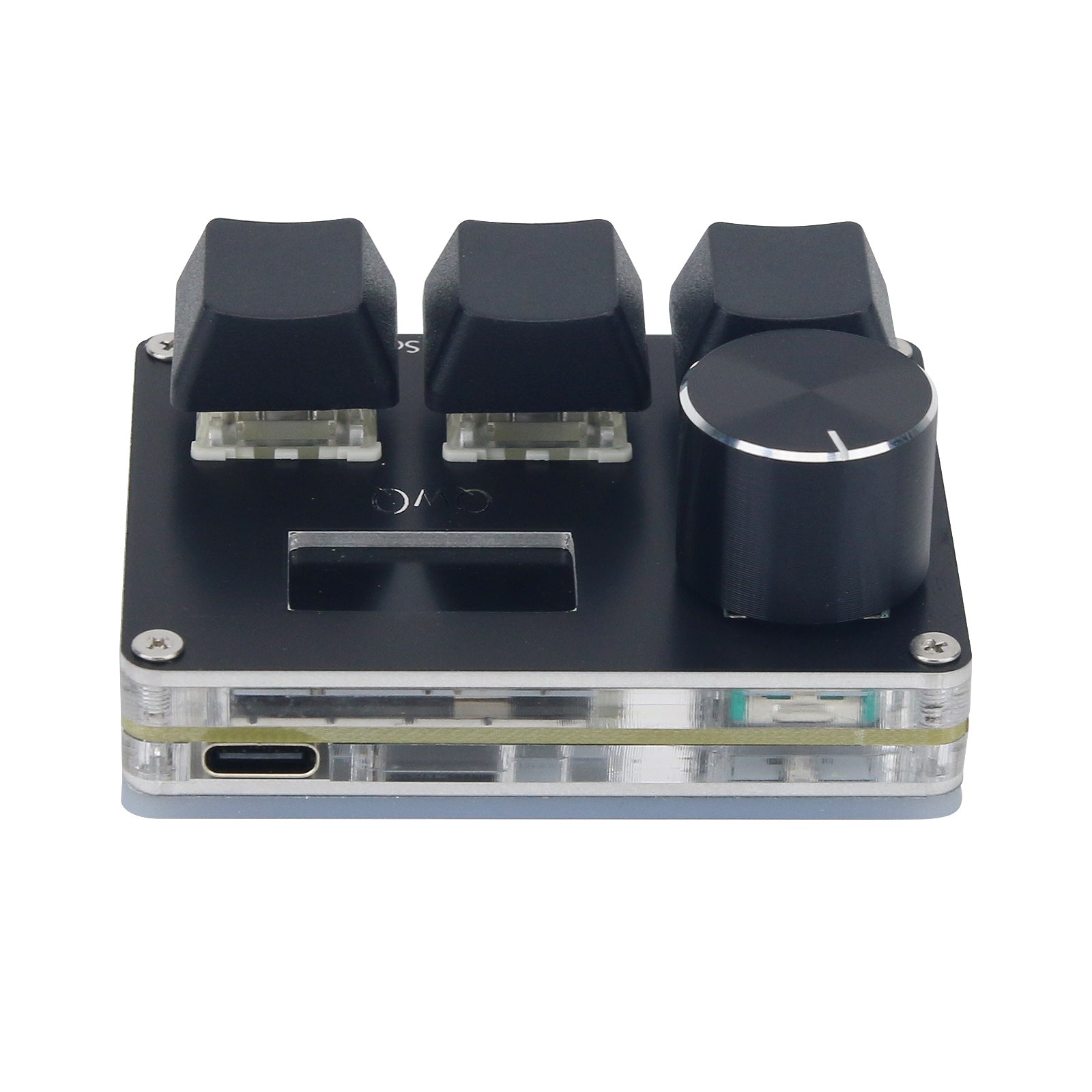 - The mechanical keyboard is designed with 3 buttons, 1 knob and 1 screen