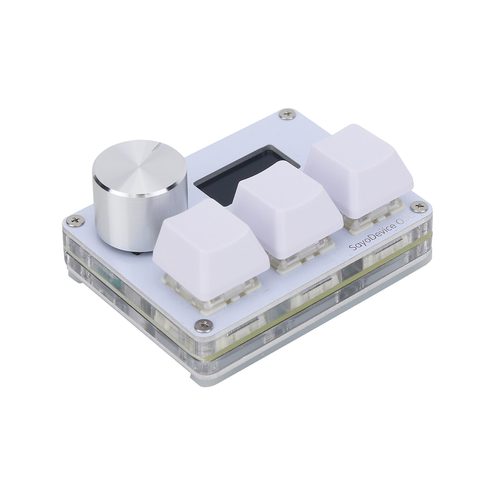 - The mechanical keyboard is designed with 3 buttons, 1 knob and 1 screen