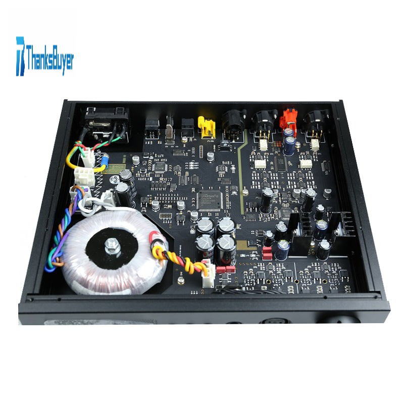 - XMOS's latest xCORE-200 series chip is adopted as the USB Audio solution. AK4497 is used as the DA conversion chip. AK4118 is used as digital audio input receiving chip, and STM32 is used as the control of the whole machine. The large-scale FPGA of Xilinx is used to process clock system and digital audio streams.