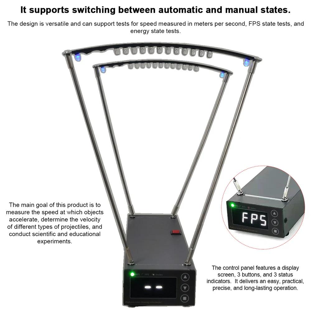 - It features a large effective induction area and high sensitivity to measure speed that the wind cannot affect, and is effortless to use. The main goal of this product is to measure the speed at which objects accelerate, determine the velocity of different types of projectiles, and conduct scientific and educational experiments. This device is appropriate for projectiles with velocities ranging from 0 to 999 m/s, and it provides accurate measurements of speed.