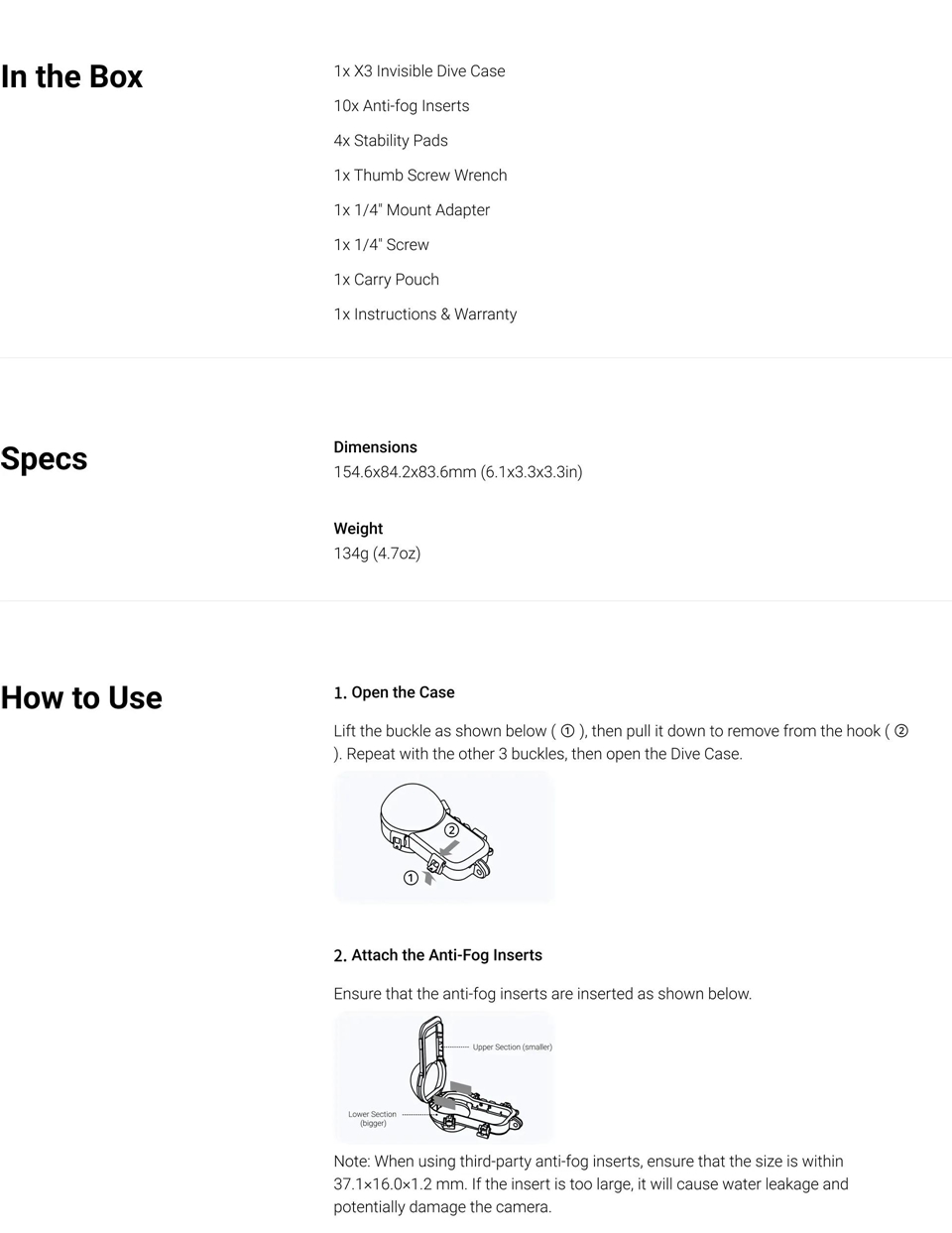 Second Generation Insta360 X3 Camera Invisible Dive Case 50M Waterproof Depth High Definition Accessories