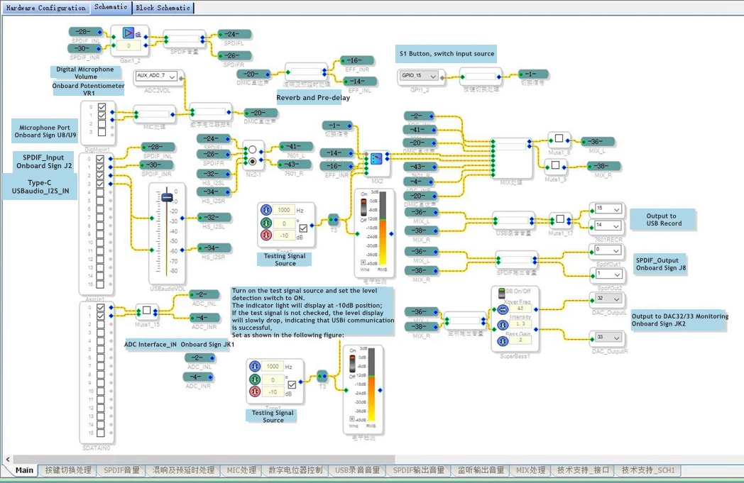 - The direct sound of the microphone is distributed to: monitor/recording port/sam5504MIC input/ADAU1463 reverb input.