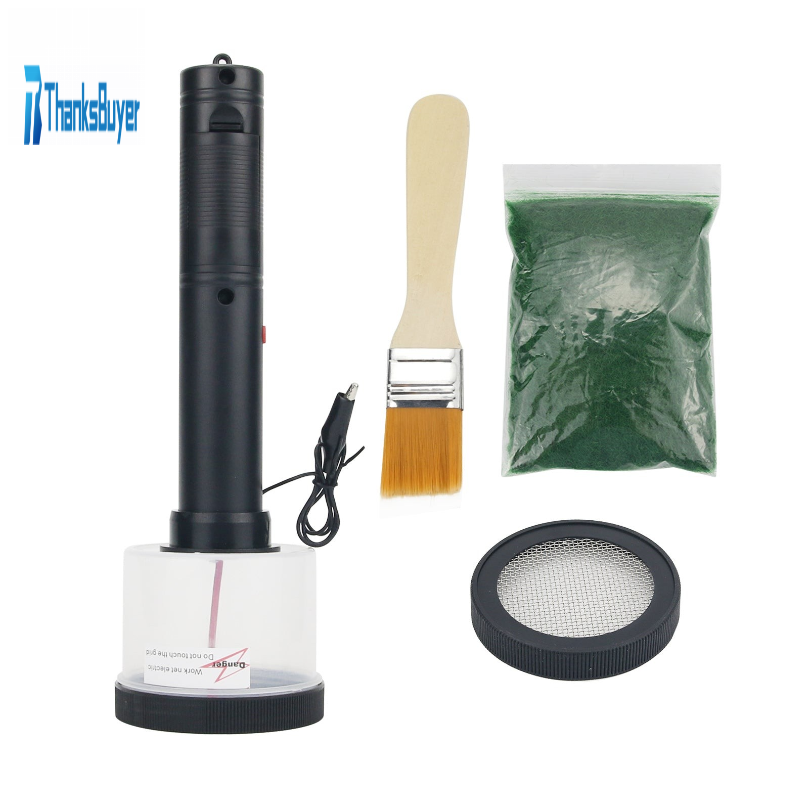 - This is a kind of fine quality ABS static grass flocking applicator set, the casing is made of fine quality ABS engineering material and is made of superior welding technology, firm and solid, with strong flocking power, and overlong working life. Humanized antiskid handle in suitable size for comfortable grip, circuit inside the handle is with low power dissipation and high voltage output, makes this flocking machine quite strong flocking capacity. Specially design for flocking in small area, sand table construction model, and other DIY scenes. You can have a try.