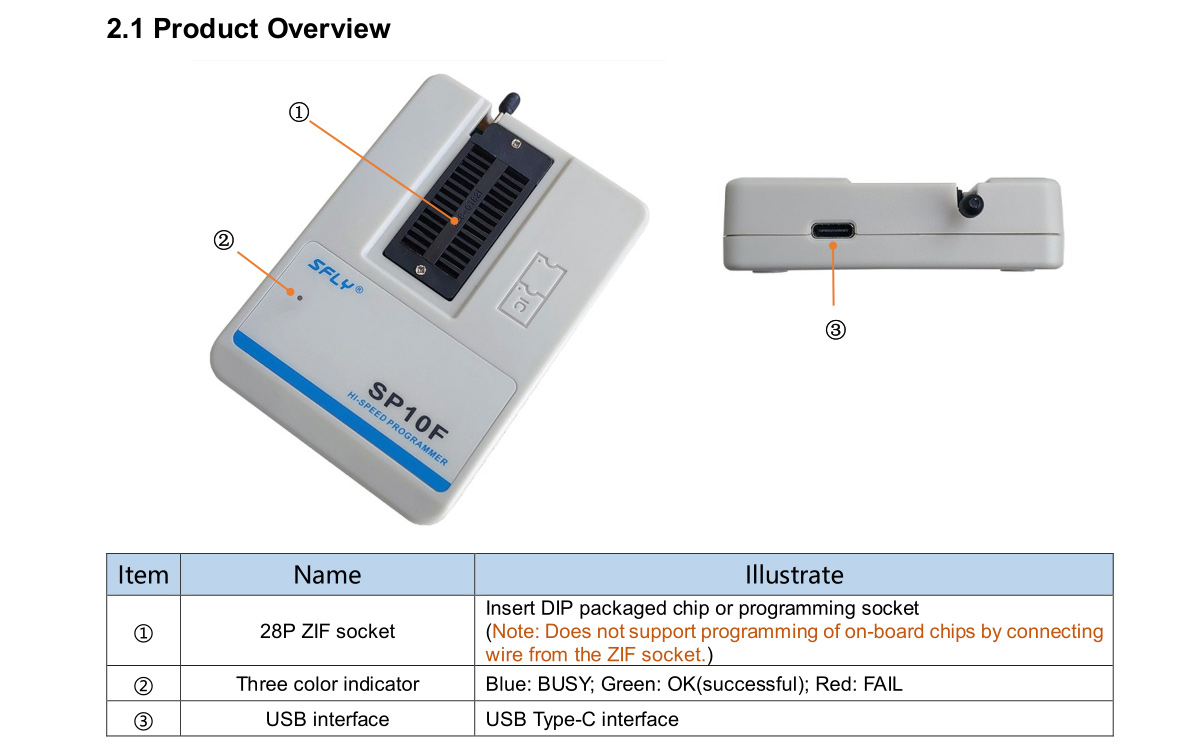 * Supports USB mode mass-production programming: automatically detects the chip insertion and removal, and automatically starts programming (Note: SP10A does not have this function)