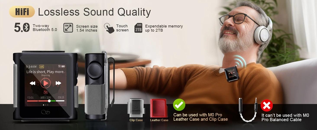 SHANLING Black M0s Portable Lossless Music Player Bluetooth5.0 CS43131 DAC Decoding Chip with 1.54-inch Touch Screen