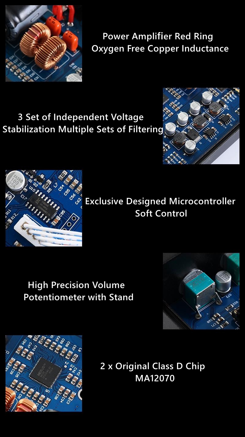 Silvery 12070 Digital Power Amplifier Dual MA12070 Bluetooth5.0 USB Input 160W+160W High Power Audio Amplifier