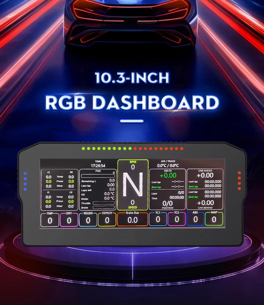 Simplayer 10.3" 1280x720 RGB Dashboard Full Color Dash Screen for PC Speed Display Sim Racing Games