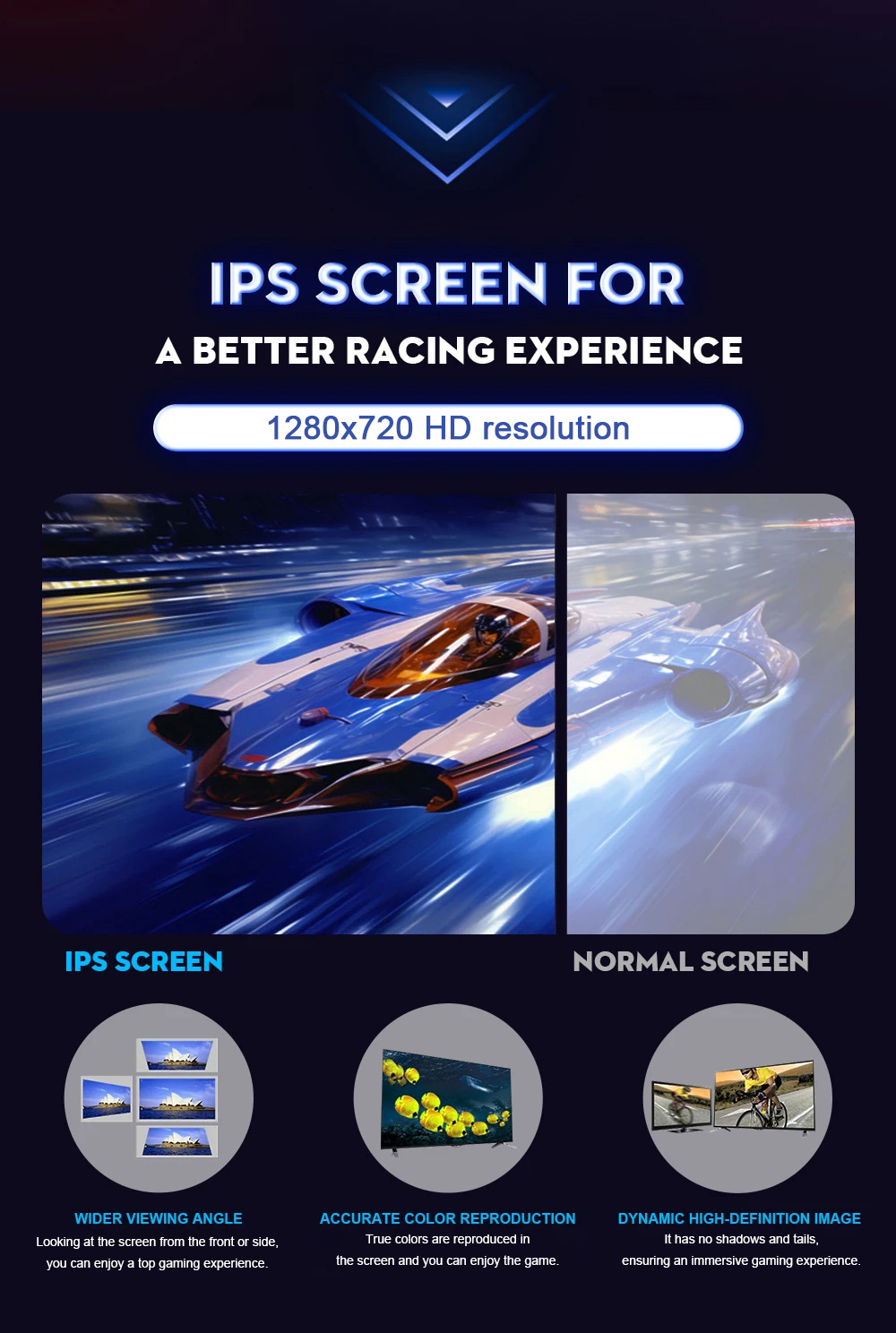 - IPS screen for a better racing experience