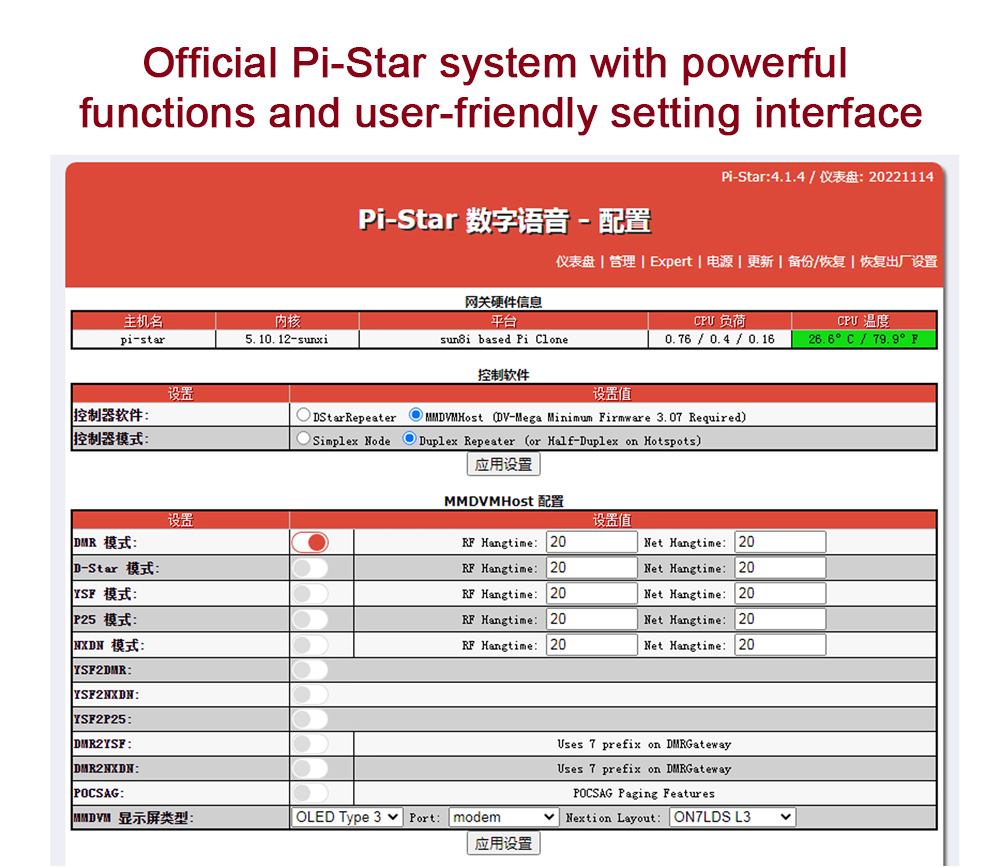 It is an MMDVM modem hotspot box. Through it, you can use ordinary digital mobile radios to achieve nationwide interconnection, which solves the limitation of the communication distance of ordinary digital walkie-talkies!