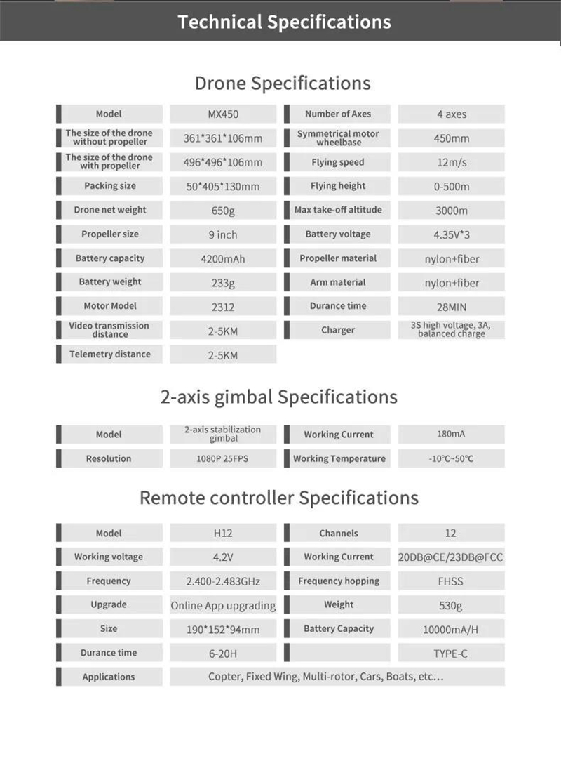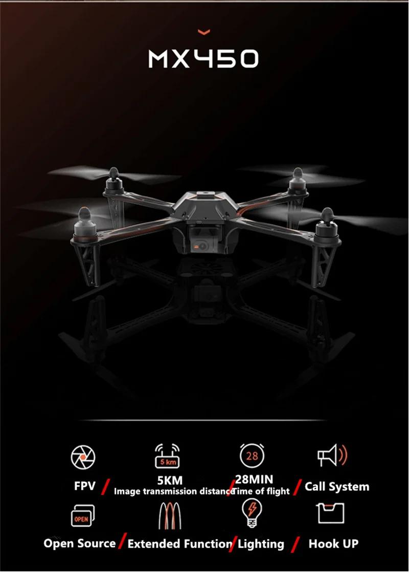 SKYDROID MX450 Multifunctional 4-Axis FPV Racing Drone Training Model 2-5KM Transmission with H12 Remote Controller