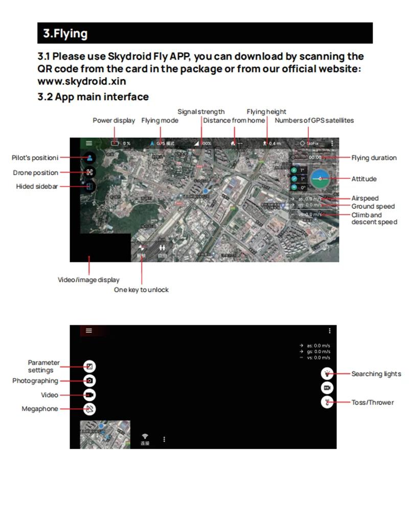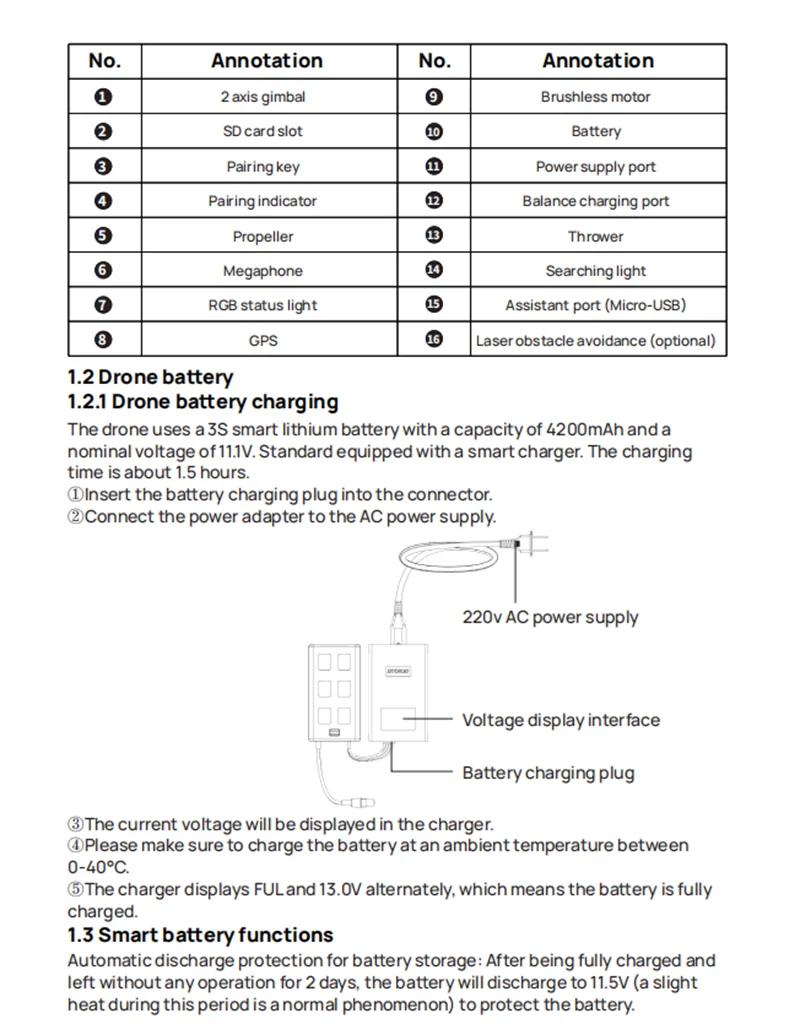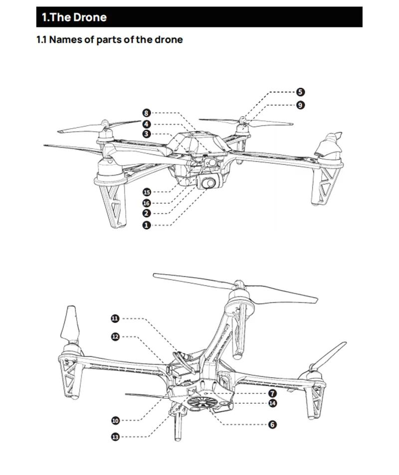 - The size of the drone with propeller: 361 x 361 x 106mm