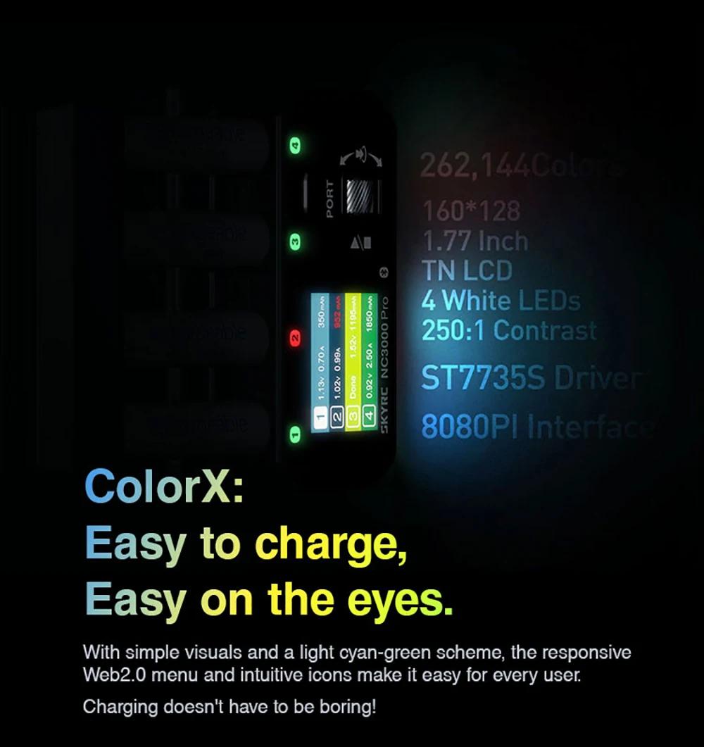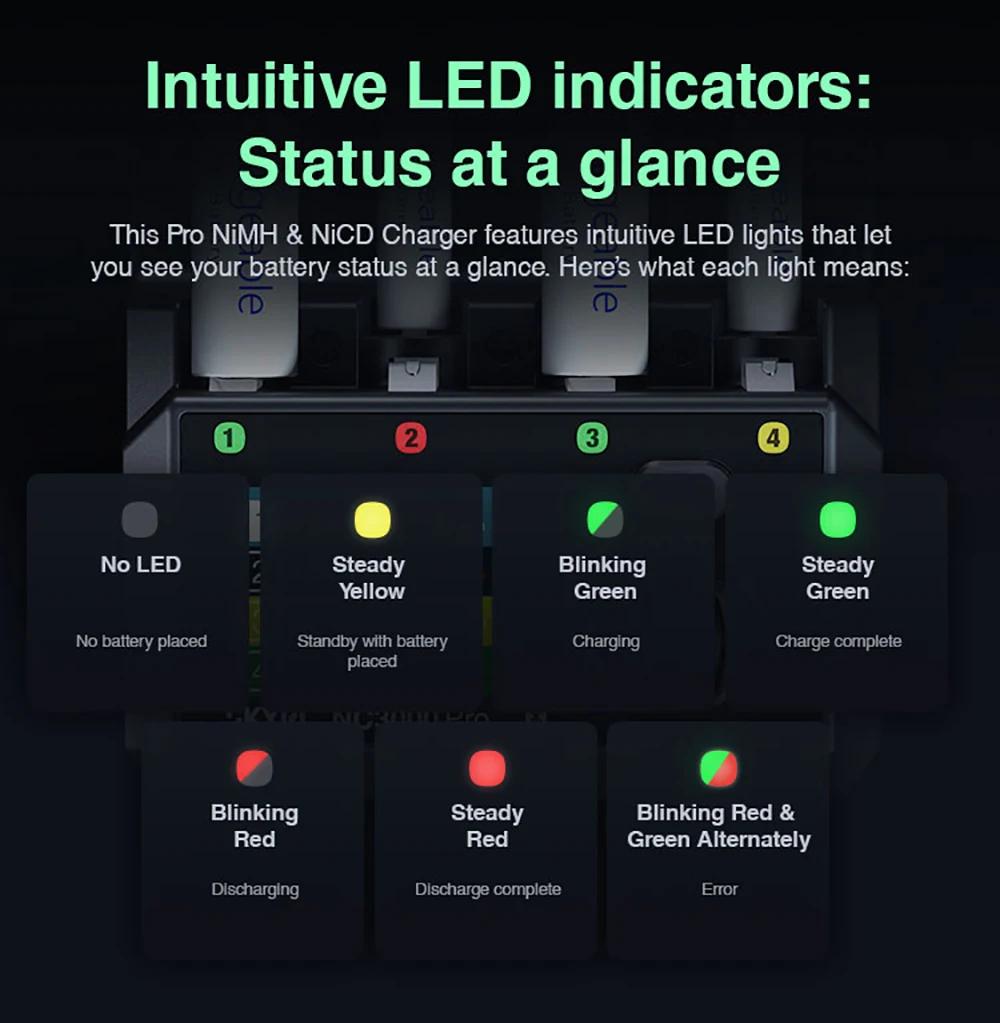 - New NC3000 Pro battery charger with four independent AA/AAA (NiMH/NiCd) slots, can simultaneously charge up to four batteries. Large LCD Color Screen, All kinds of information are clear at a glance.