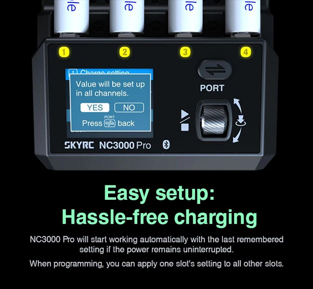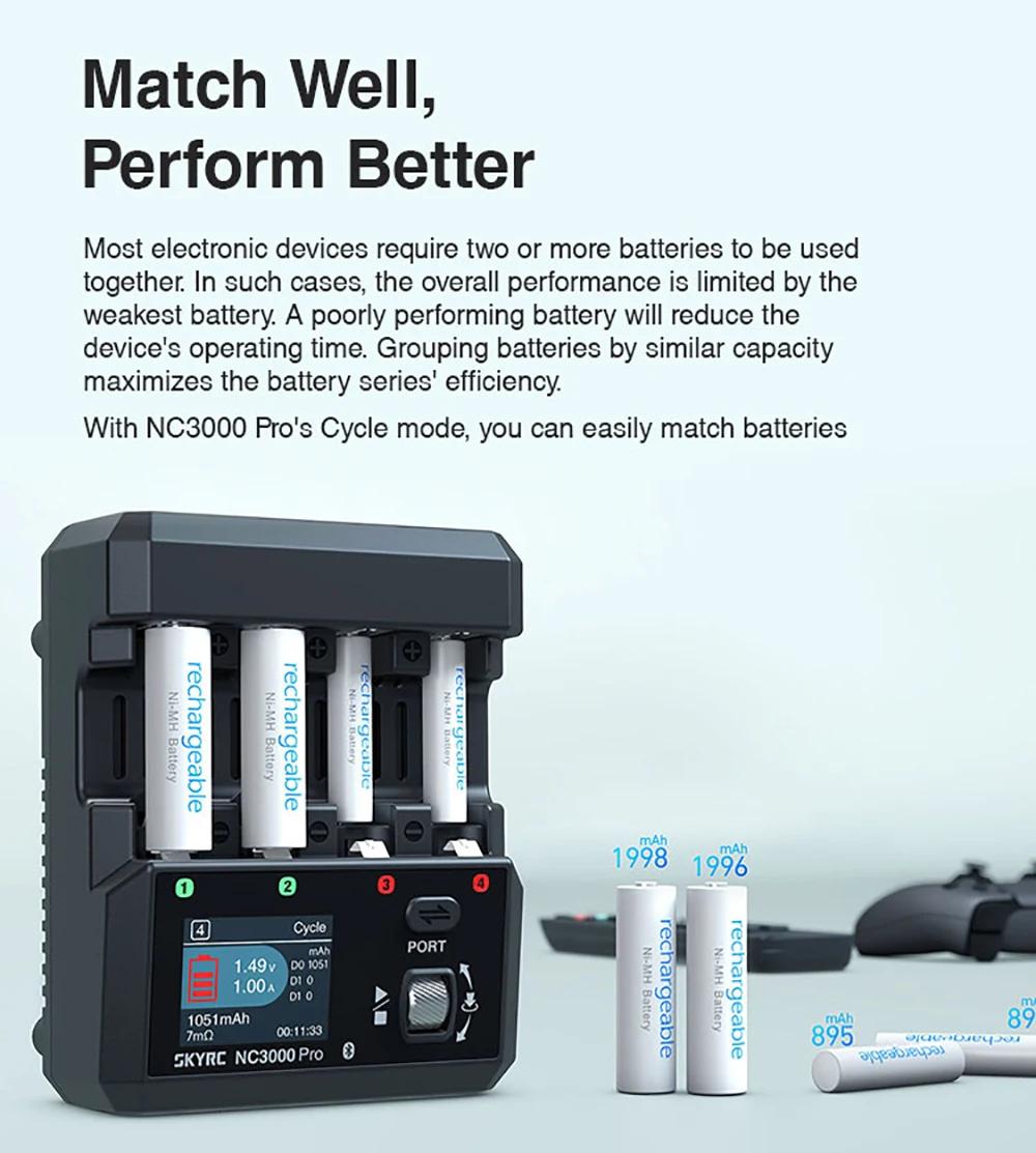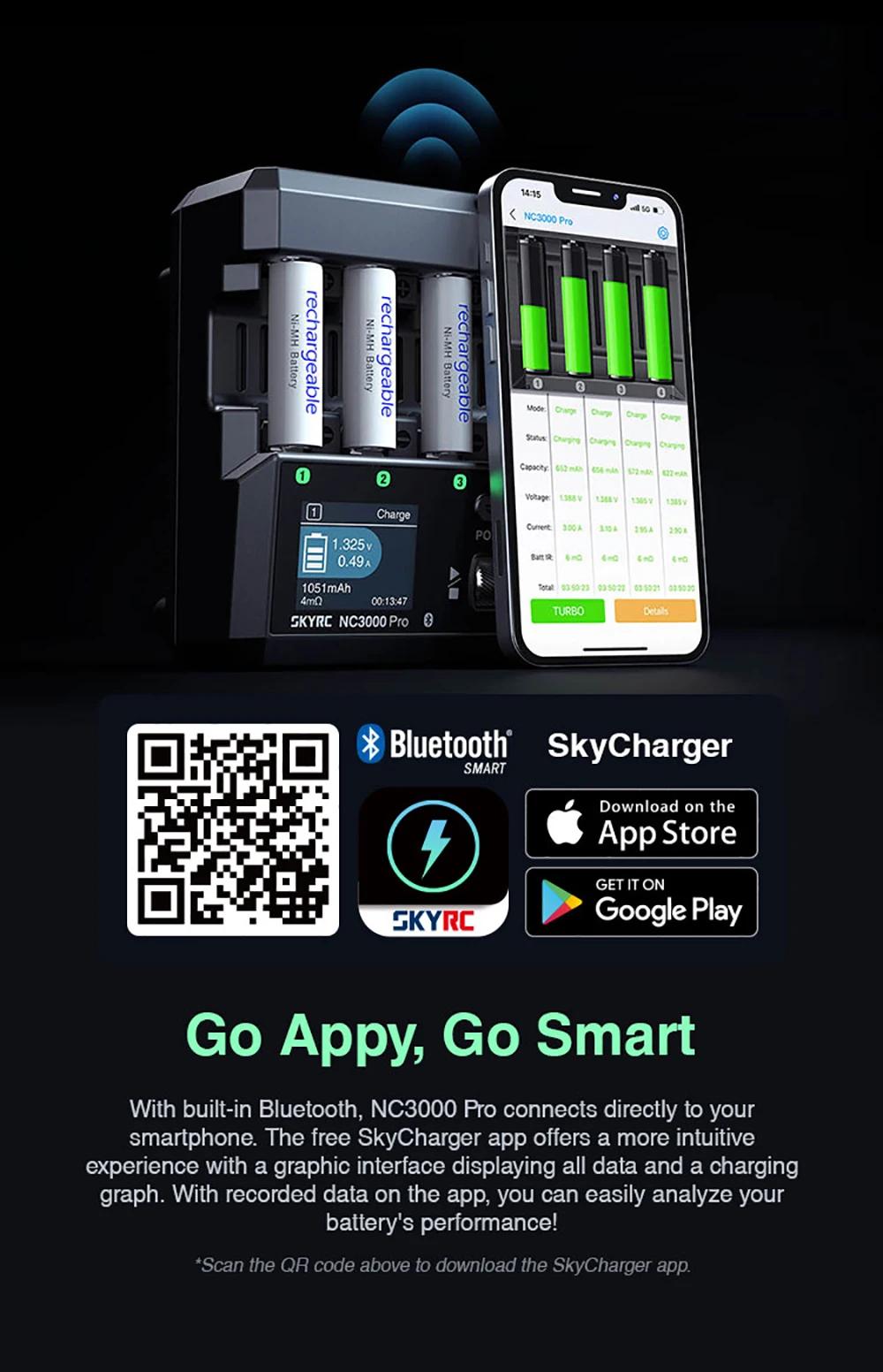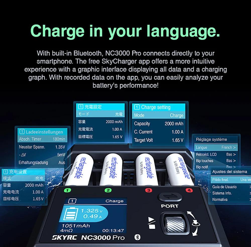 SKYRC NC3000Pro NiMH/NiCd Battery Charger AA/AAA 4-Channel Slots Support Bluetooth Cellphone APP Control