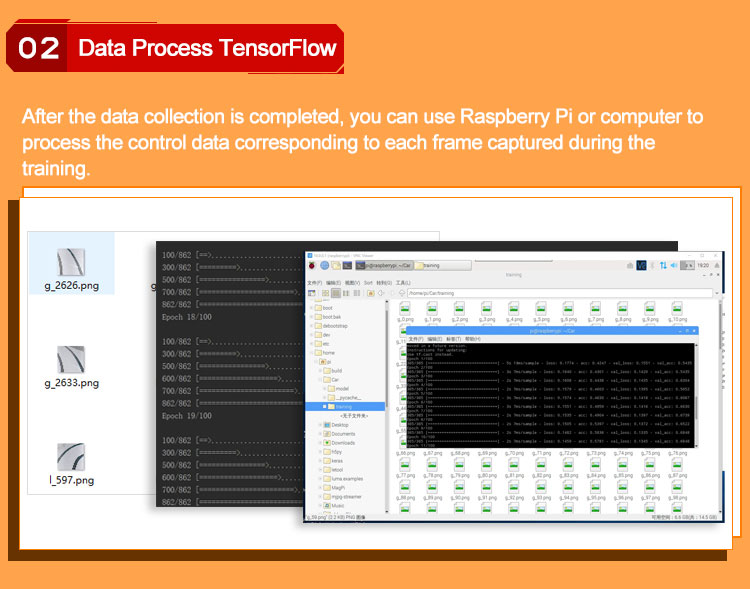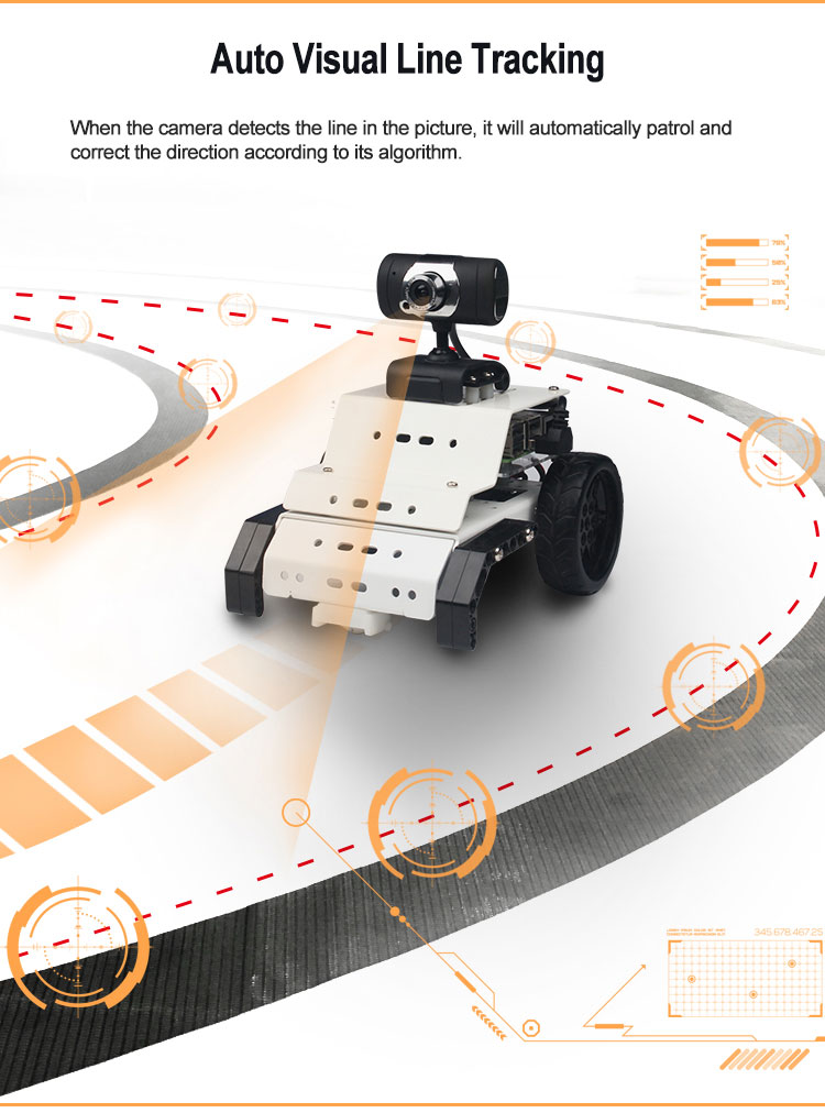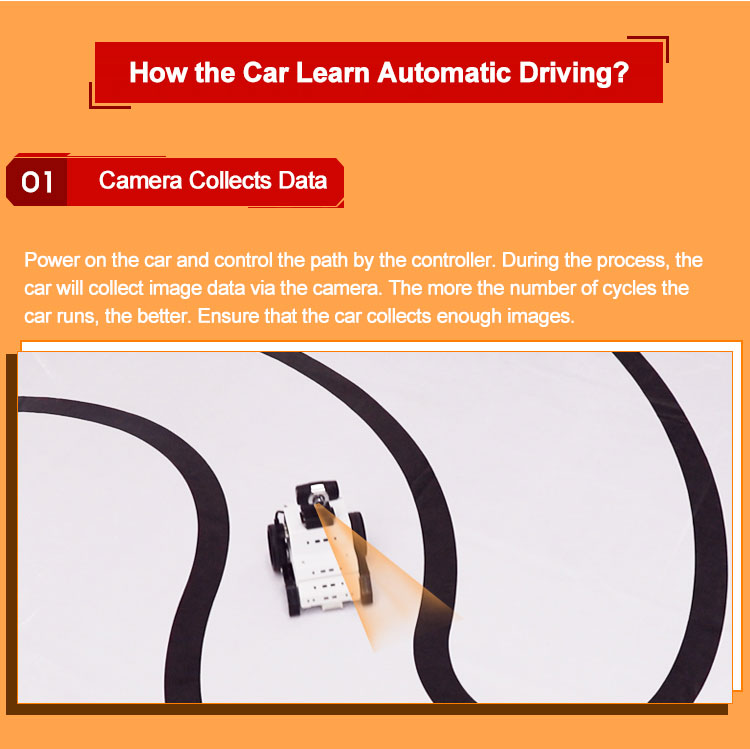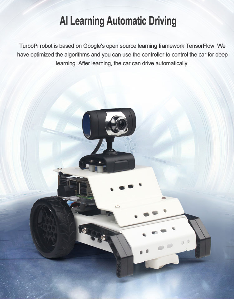 - The kit comes with HD camera. With simple training, Google's open source machine learning framework Tensorflow enables automatic driving.