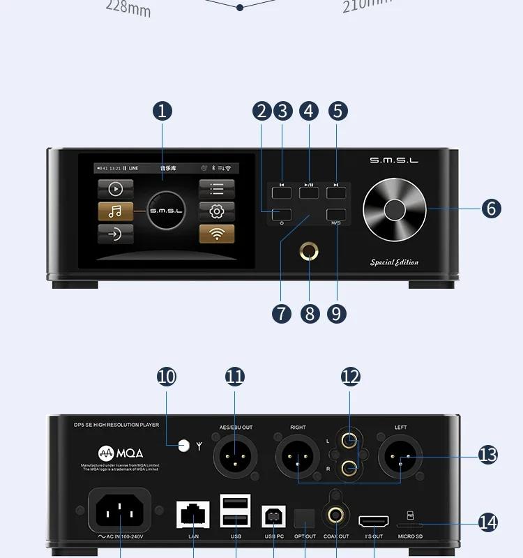 SMSL DP5 SE HiFi Network Music Player Digital Headphone Amplifier Streaming Decoder High Resolution DAC