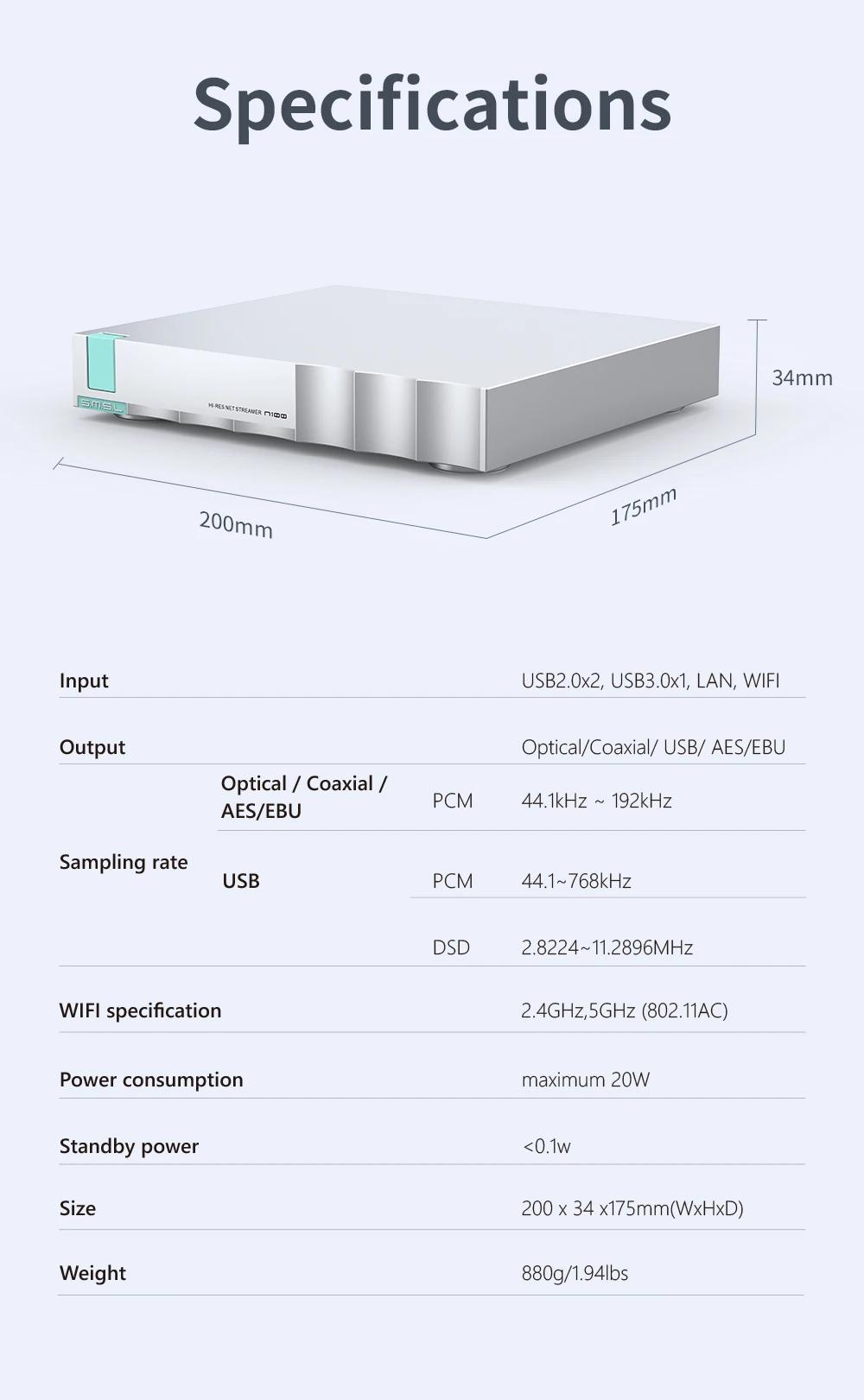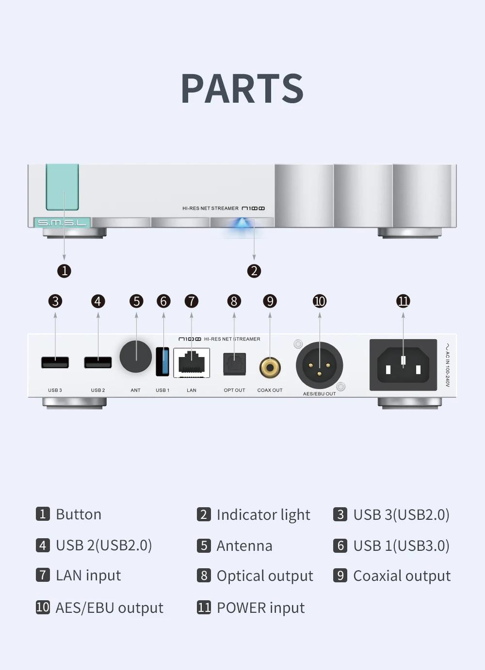 - Output interface: optical fiber/coaxial/USB/AES/EBU