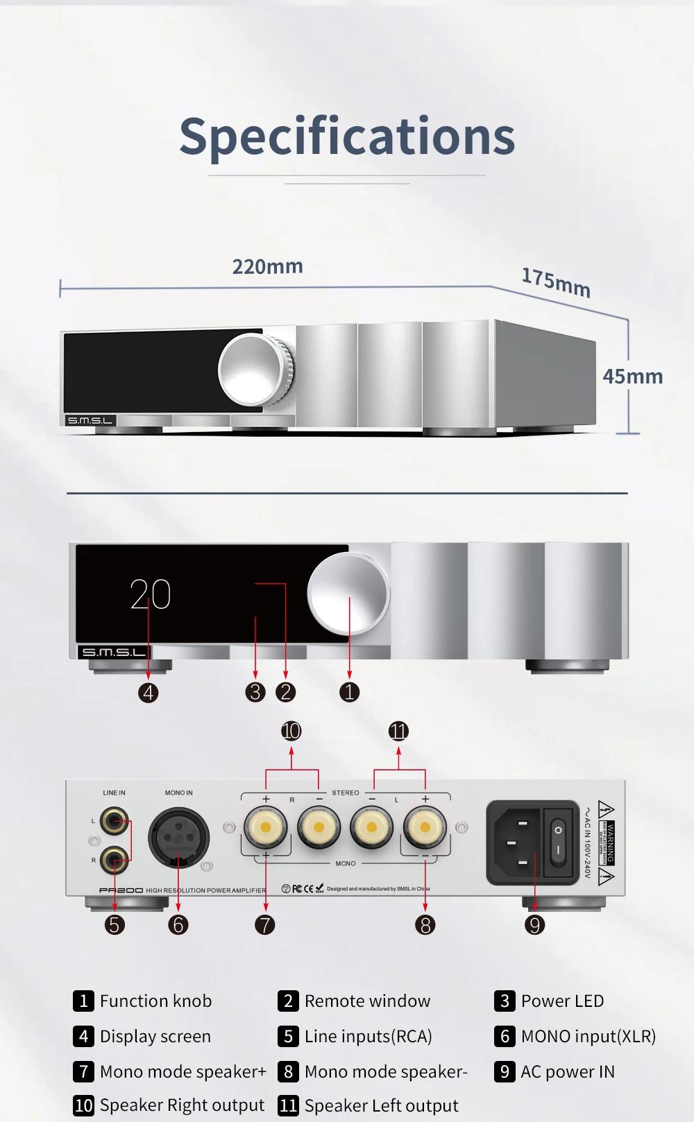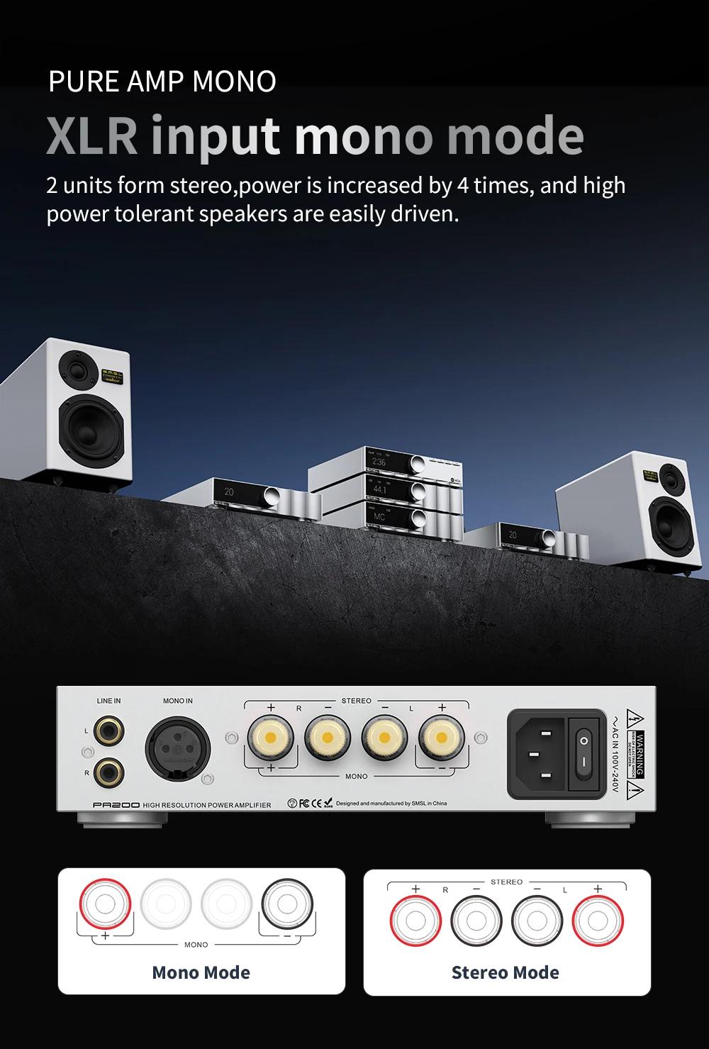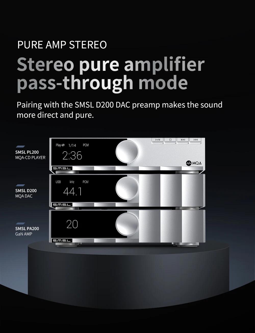 SMSL PA200 Gallium Nitride 160Wx2 High Power HiFi Power Amplifier with PGA2311 Advanced Volume Chip