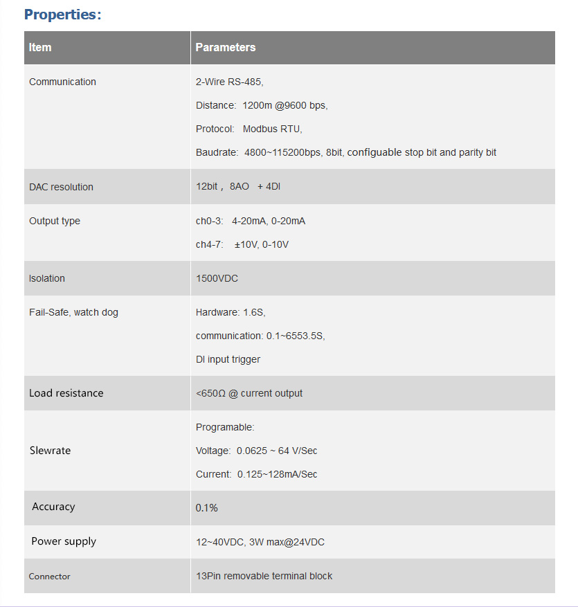 * Support Modbus-RTU protocol