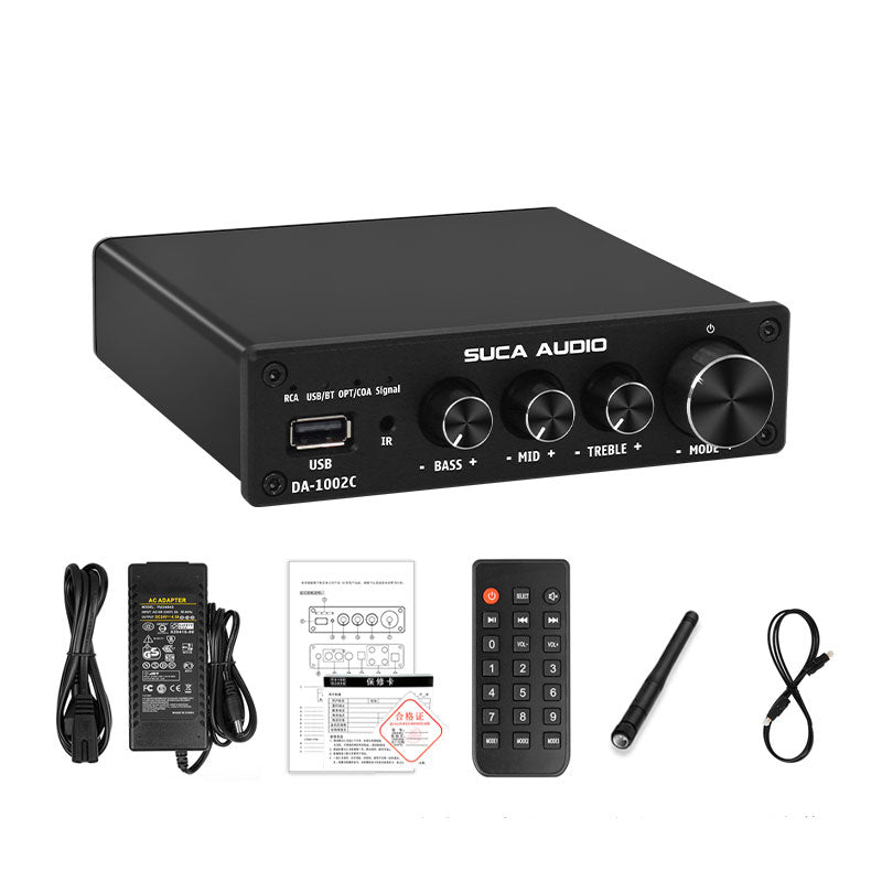 SUCA AUDIO DA-1002C Hifi Digital Power Amplifier 100Wx2 Bluetooth 5.0 DAC w/ 24V 4.5A Power Adapter