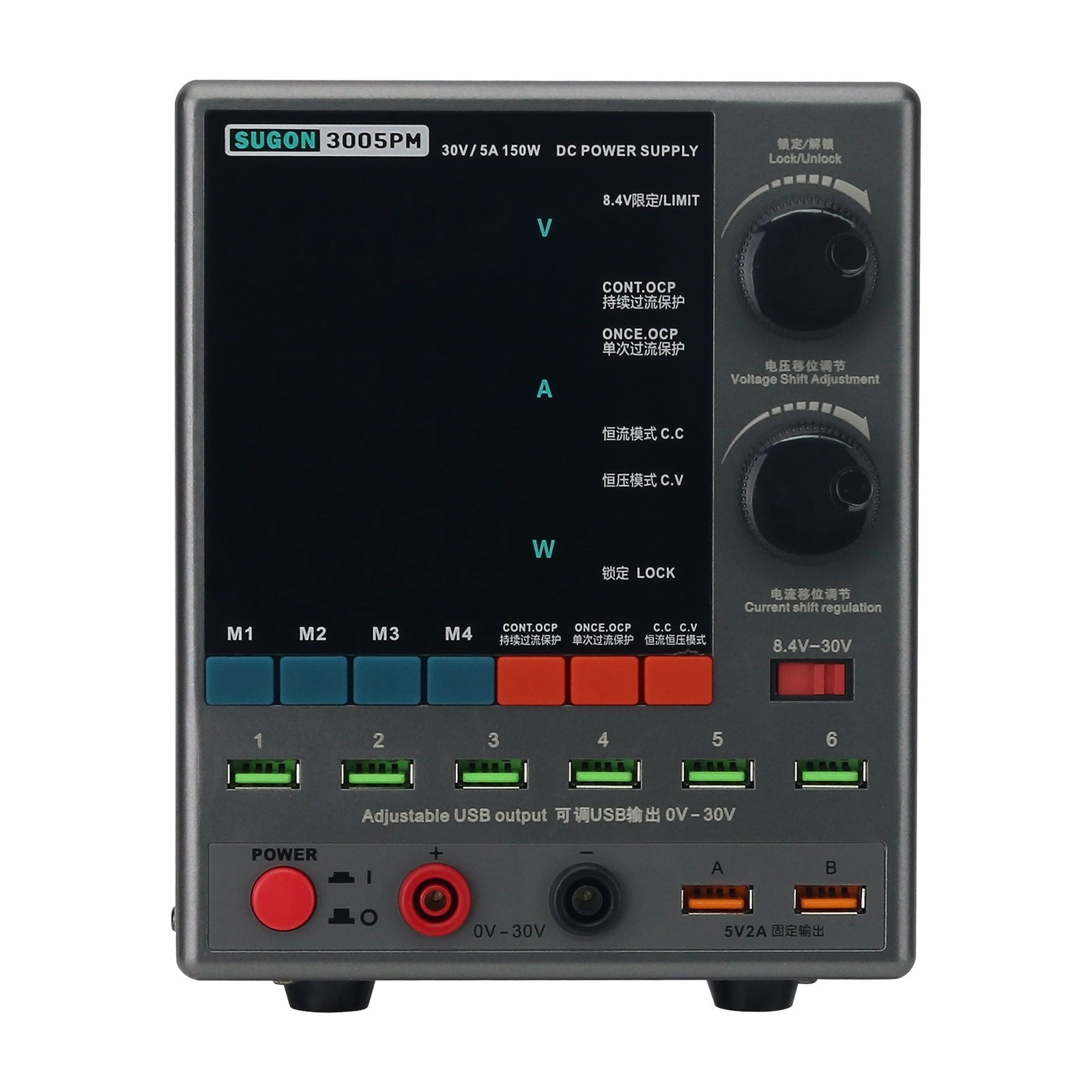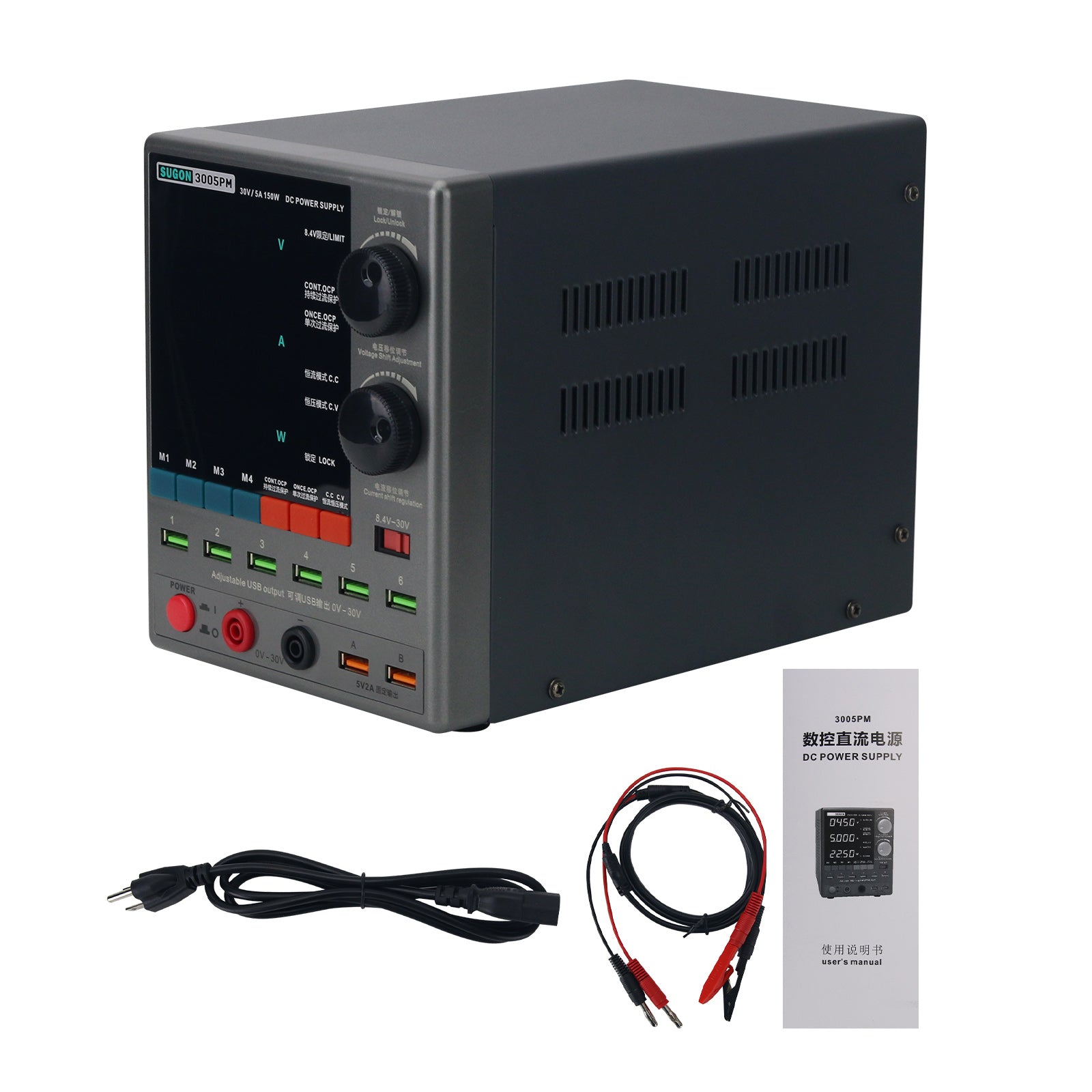 SUGON 3005PM 30V/5A 150W DC Power Supply 4-Digit Adjustable Power Supply (220V) with 6 USB Outputs