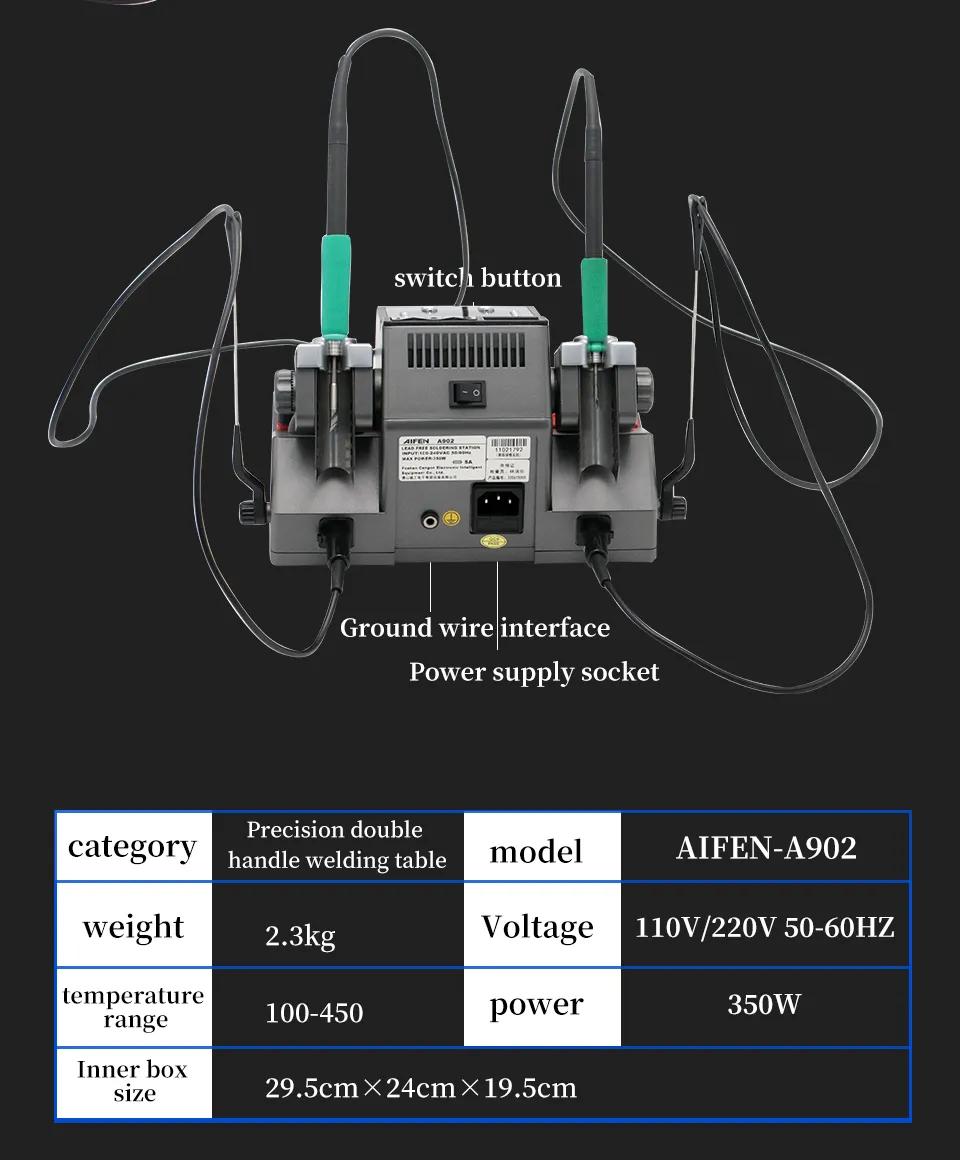 SUGON AIFEN A902 350W Soldering Station Double Welding Rework Station Linear Control 3xC210 + 3xC115 + 3xC245 Soldering Pen