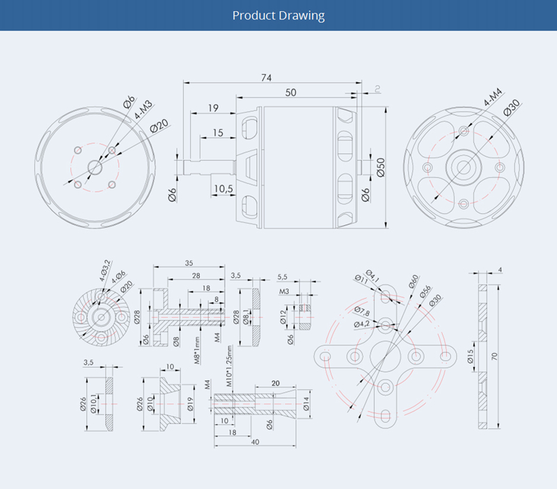 T-Motor Drone Motor Brushless AT4125 Long Shaft Motor 540KV Heavy Lift BLDC Motor For Fixed Wing UAV