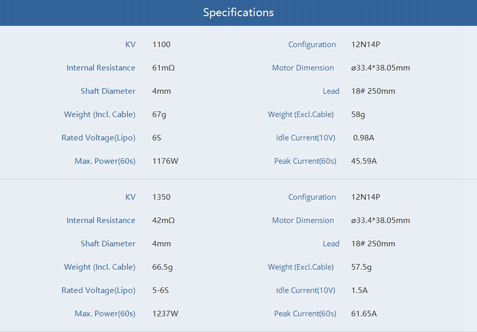T-Motor F100 KV1350 5-6S Cinematic FPV Motor Drone Brushless Motor For 7-8" X8 Cinelifter Build