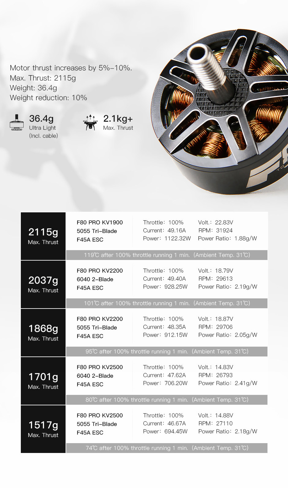 T-Motor F80 PRO KV2200 3-5S Brushless Motor FPV Motor For 300MM/11.8" Frame Long-Range FPV Drones