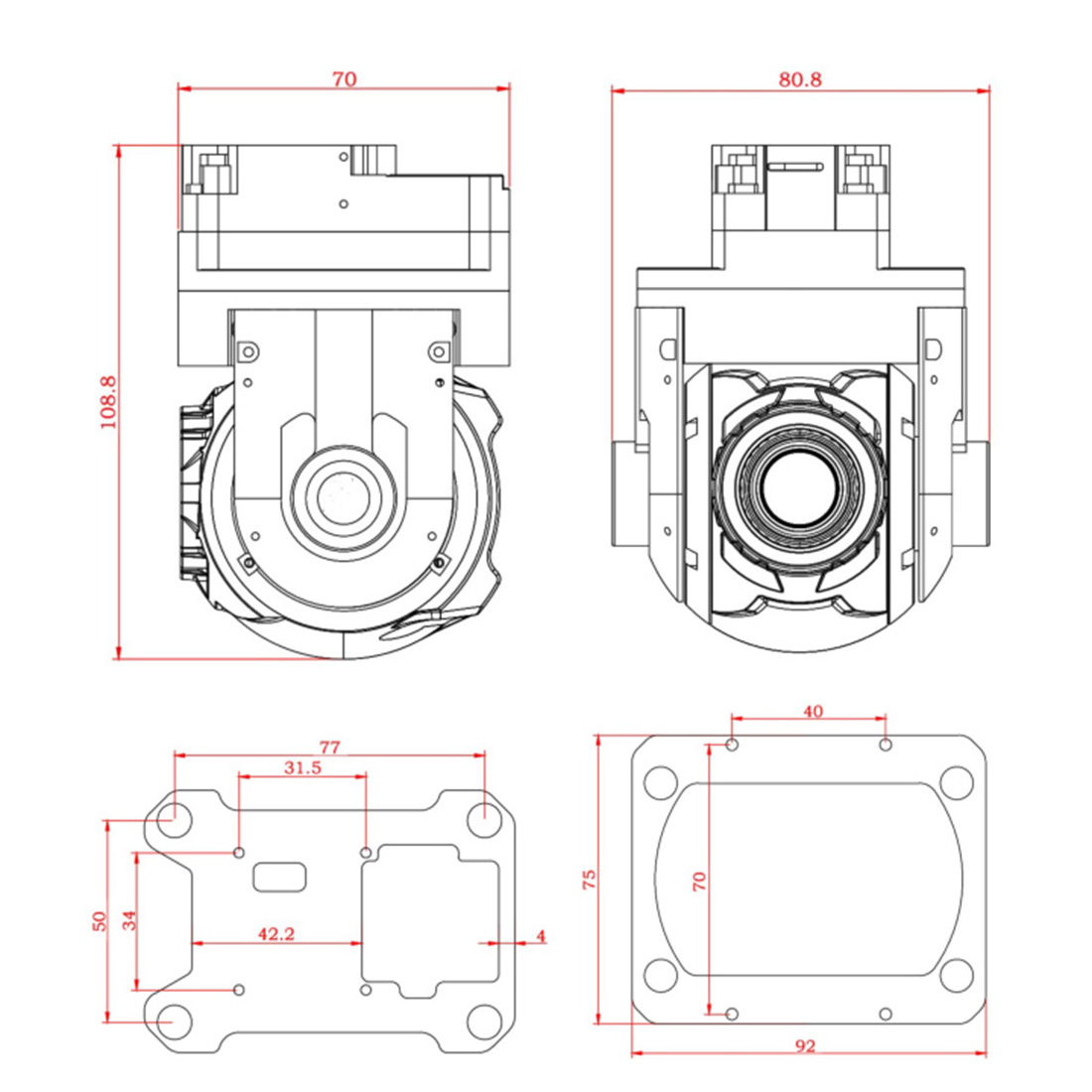 - Controllable rotation range: Heading: ± 200 °  in course locking mode; ± 170 ° in course following and FPV mode; Pitch: ± 120 ° to -10 °  for upside down installation; +30 to -120 °  for upright installation