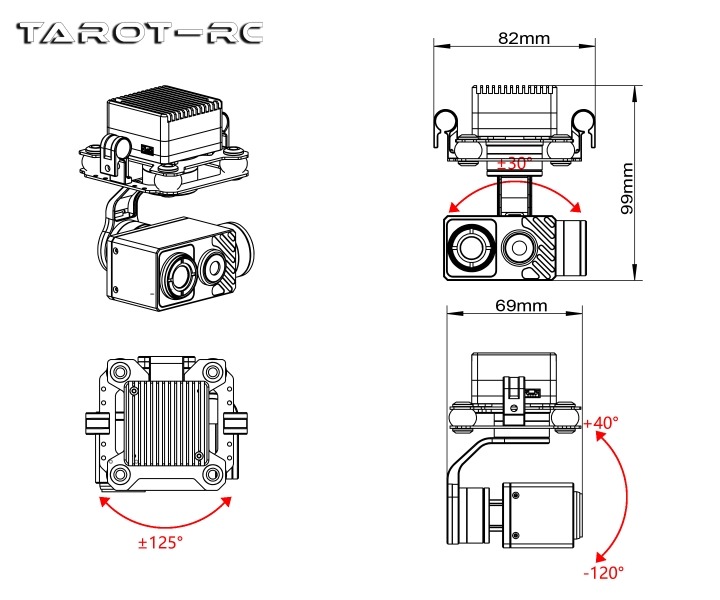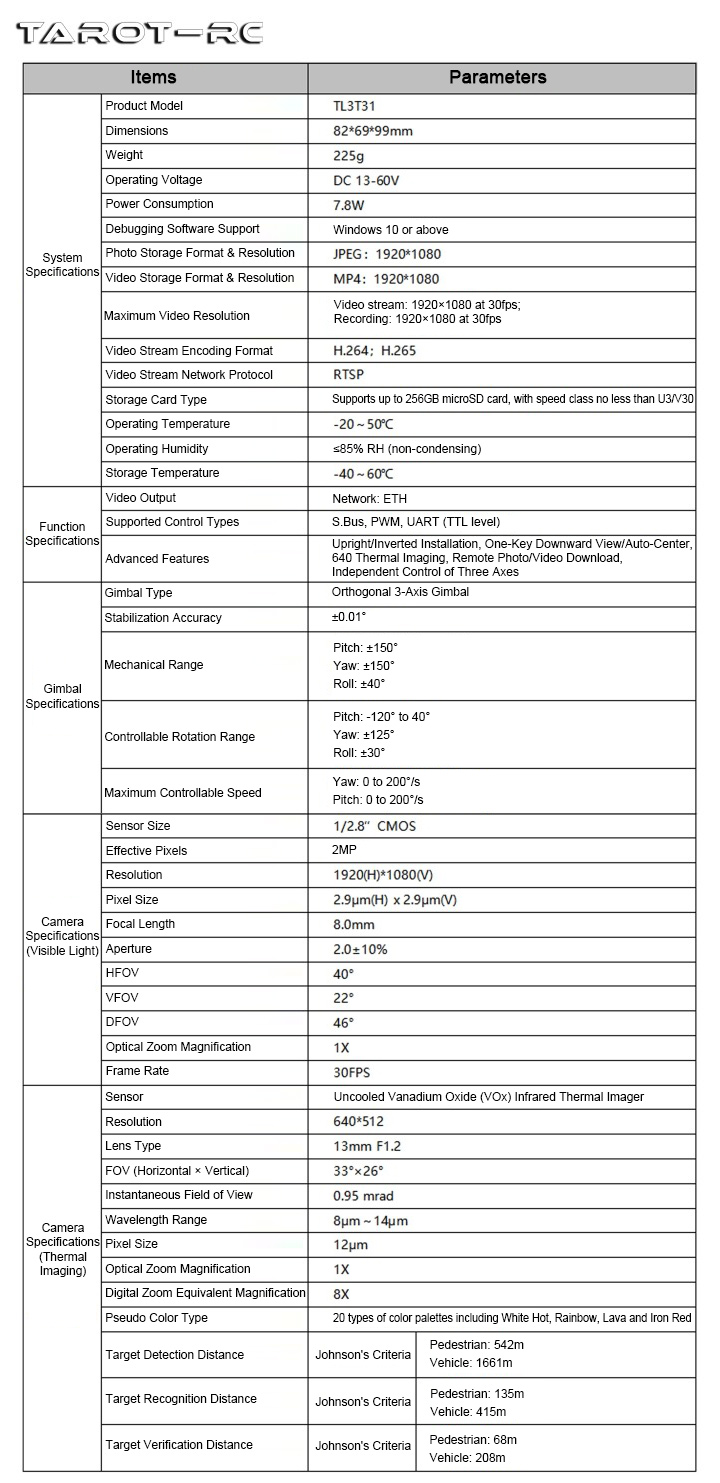 Tarot TL3T31 3-Axis Gimbal w/ 640 Thermal Imaging Camera & 2MP Visible-Light Camera & Network Output