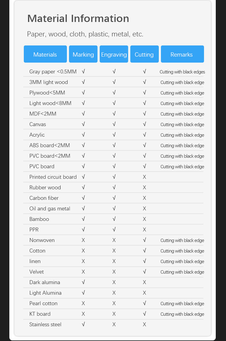 - Laser precision: 0.01mm
