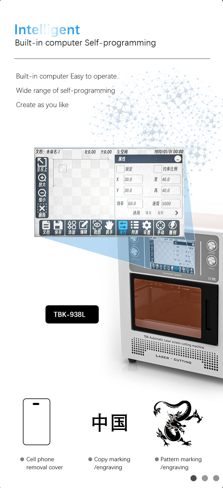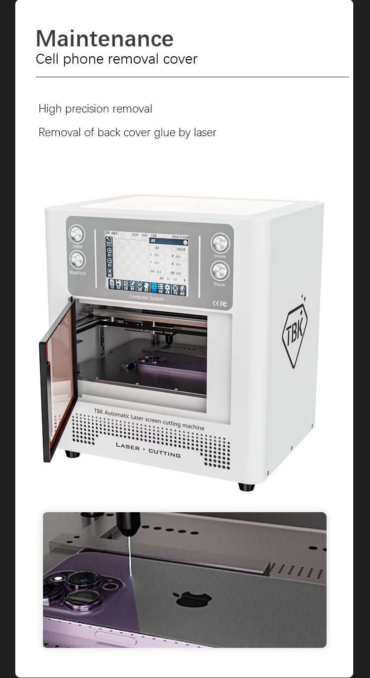 TBK-958L Multifunctional Automatic Laser Engraving Machine for Mobile Phone Cover Removal/Marking/Cutting